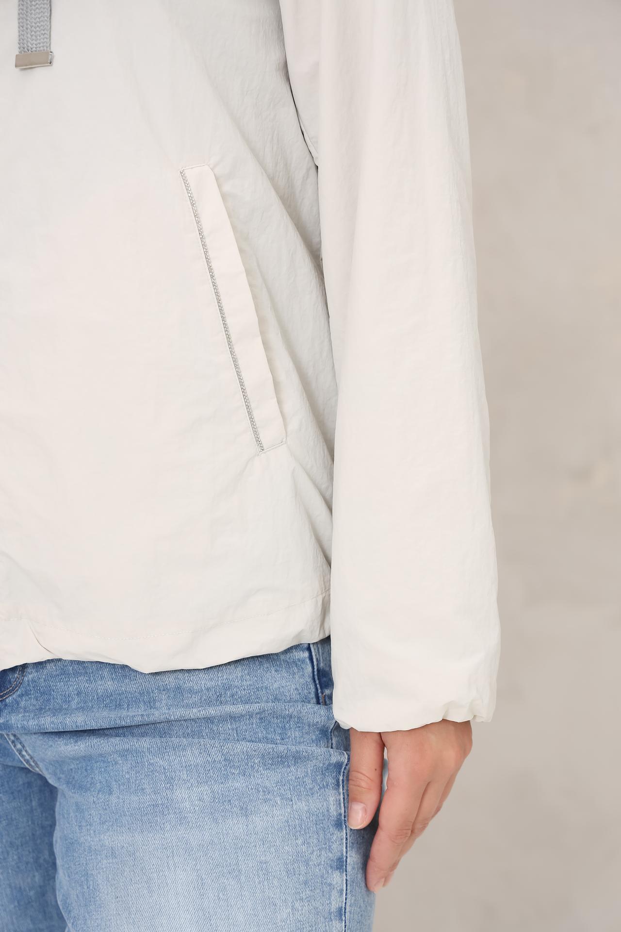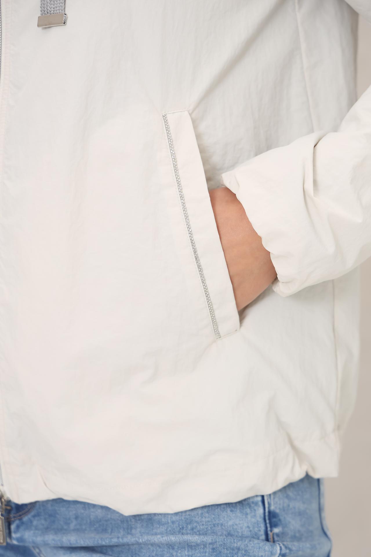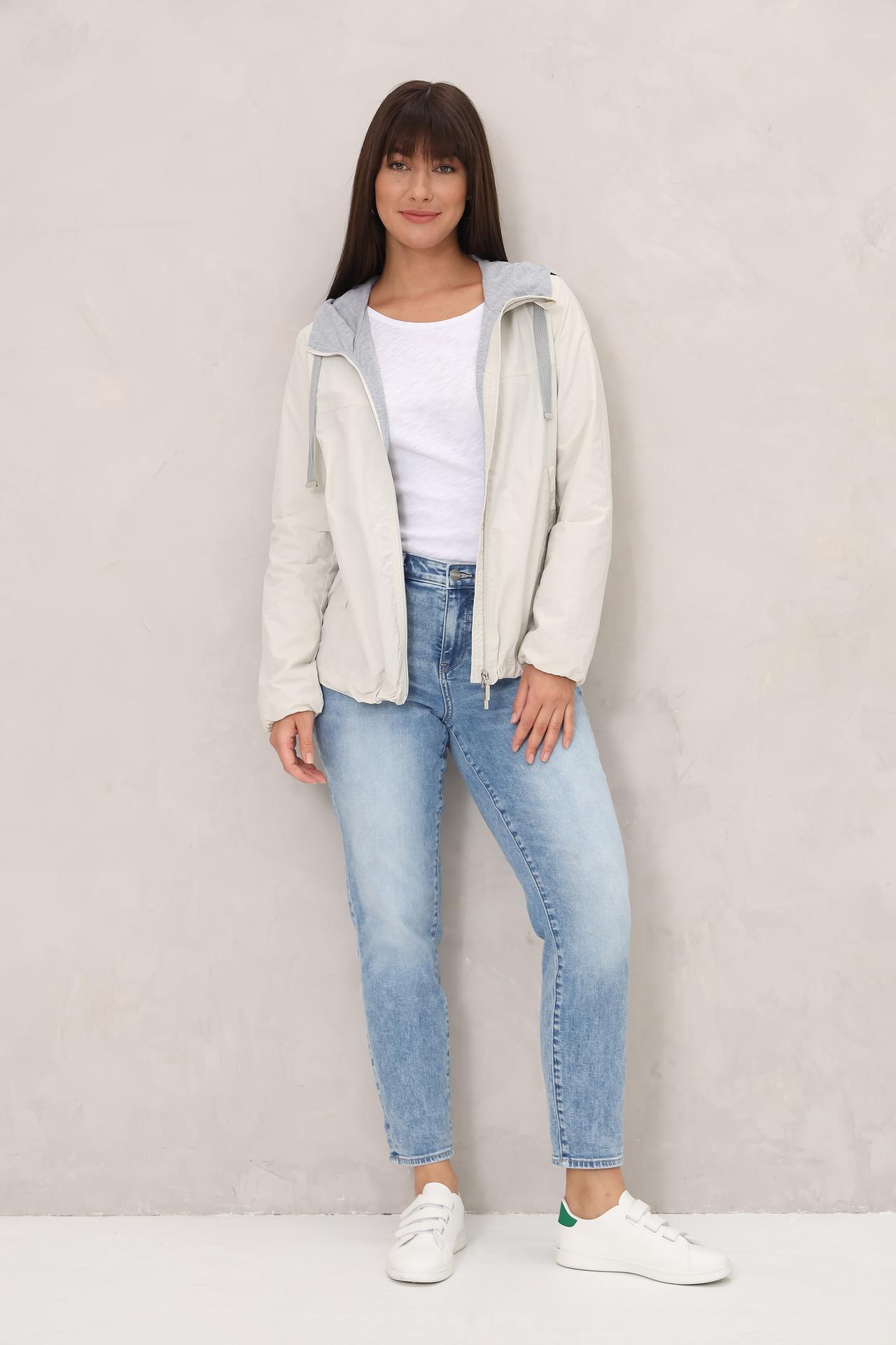 - Стильный дизайн. Минималистичный крой и нейтральный бежевый цвет делают эту куртку универсальной и подходящей для любого случая.