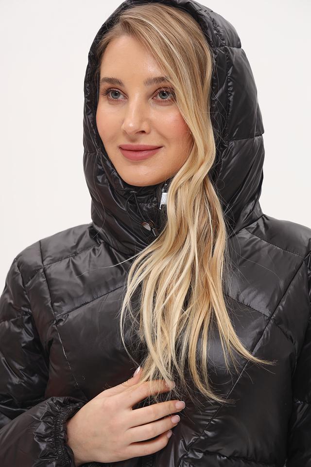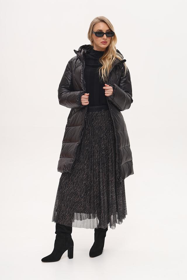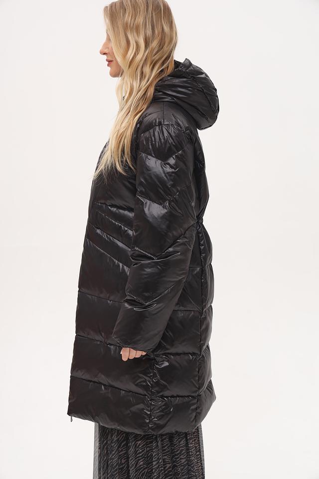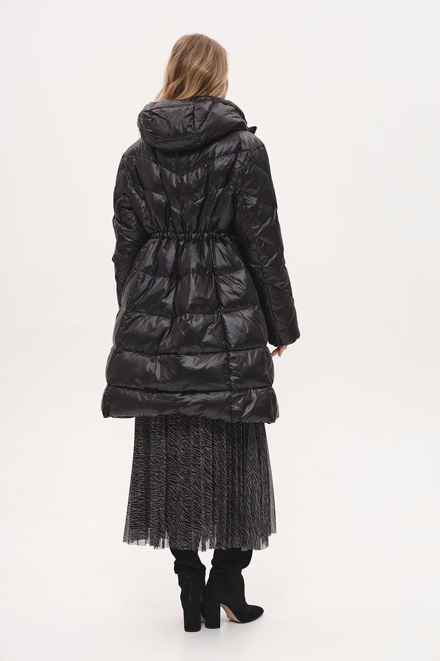 Модель имеет стеганую фактуру, которая придает ей современный вид. Пальто оснащено удобным капюшоном, который защитит от ветра и осадков. Застежка-молния позволяет легко регулировать степень теплоизоляции.