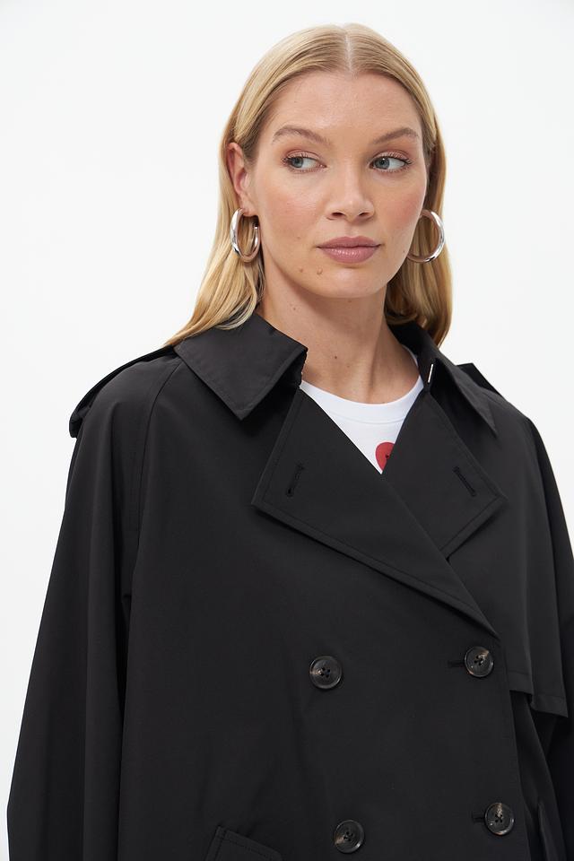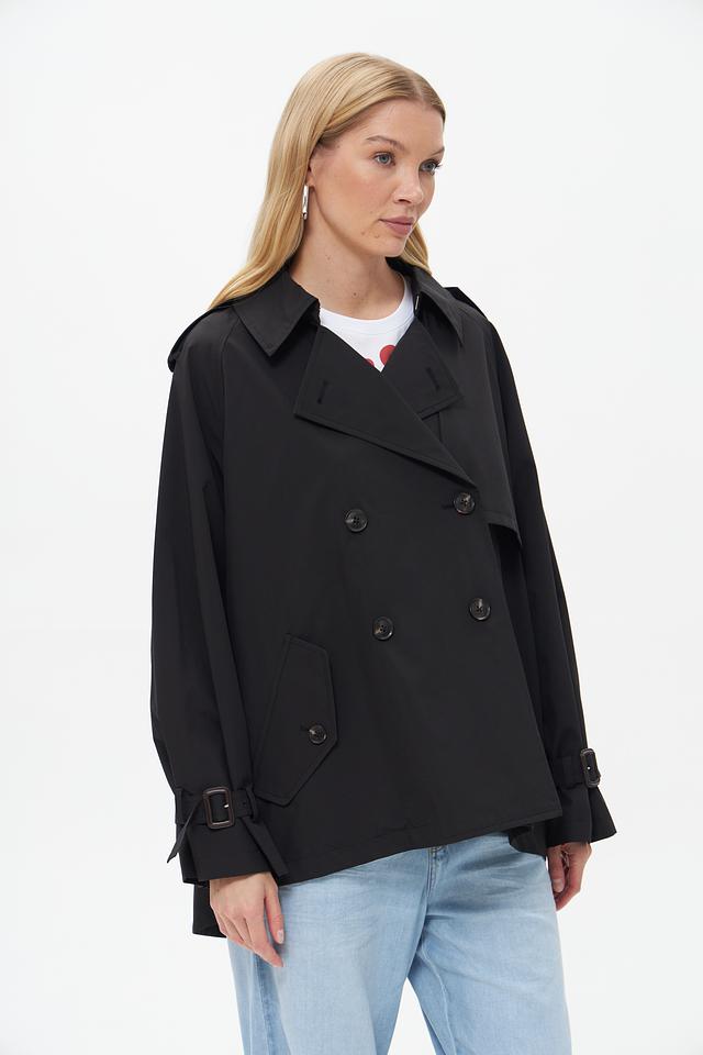 Чёрный плащ оверсайз от White Label из 100% полиэстера. Модель выполнена в классическом стиле с двубортной застёжкой и поясом. Идеальный выбор для создания стильного и комфортного образа. Состав: полиэстер 100%