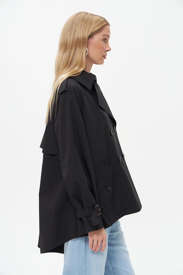 Женский плащ от White Label – это стильное и практичное решение для переменчивой погоды. Модель выполнена в классическом чёрном цвете, который легко сочетается с любым гардеробом.