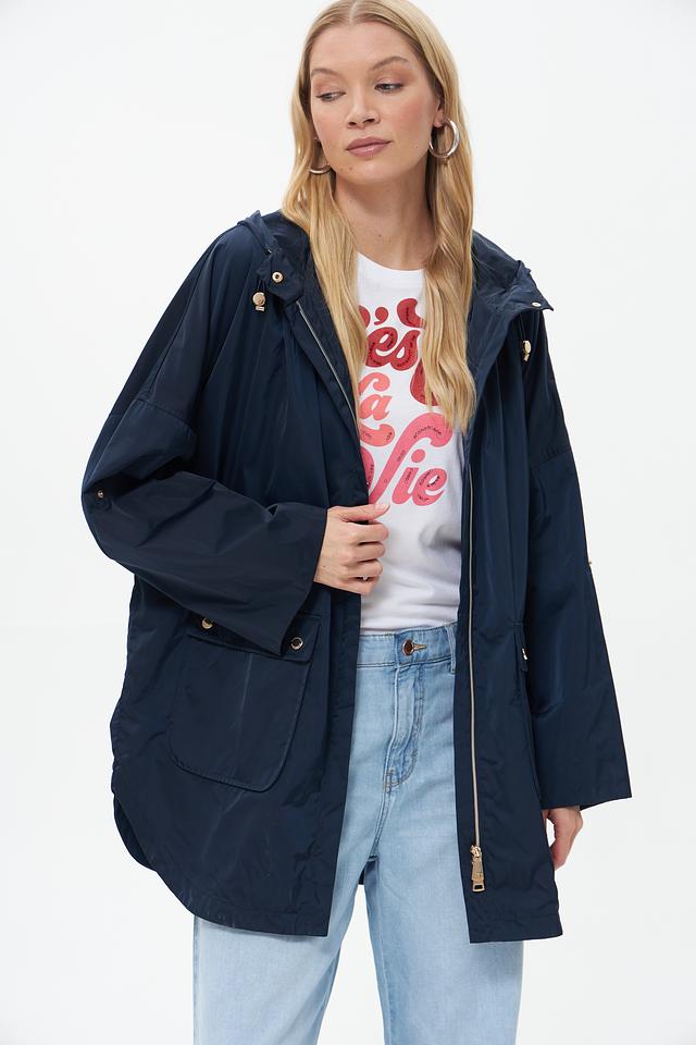 Темно-синяя куртка от White Label выполнена из 100% полиэстера. Модель имеет капюшон со шнурком и вместительные накладные карманы. Куртка идеально подходит для прохладной погоды. Состав: полиэстер 100%