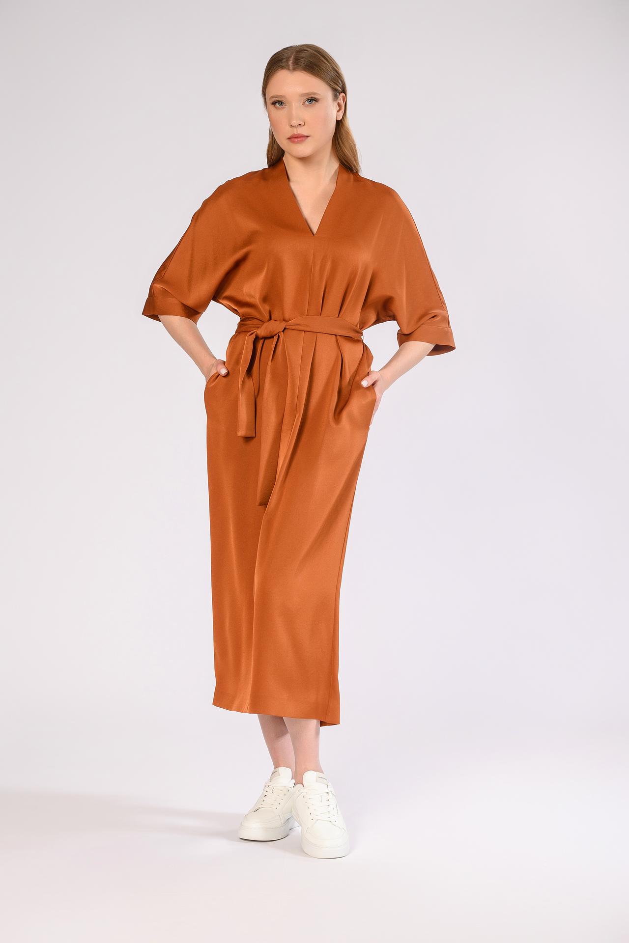 Элегантное женское платье Windsor выполнено из высококачественного триацетата (77%) и полиэстера (23%). Материал обеспечивает идеальную посадку, приятен к телу и устойчив к сминанию, что делает его идеальным выбором для повседневного и вечернего образа. Модель миди длины с широкими рукавами и V-образным вырезом создает утонченный и расслабленный силуэт. Глубокий оранжевый оттенок добавляет яркости и теплоты в ваш гардероб.