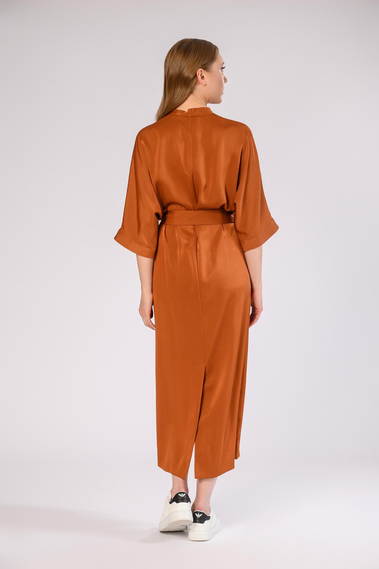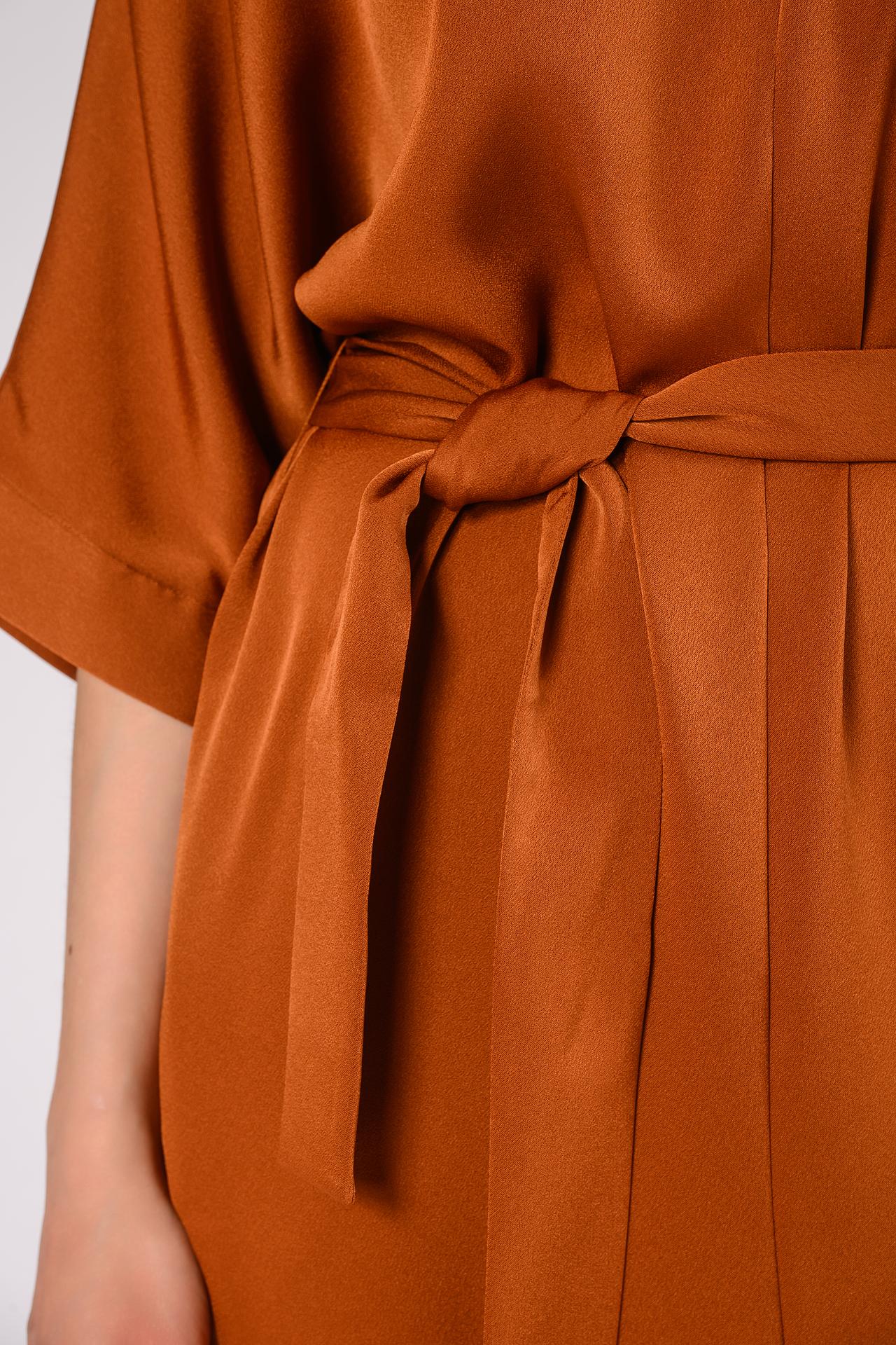 Платье Windsor Оранжевое миди с поясом и V-образным вырезом