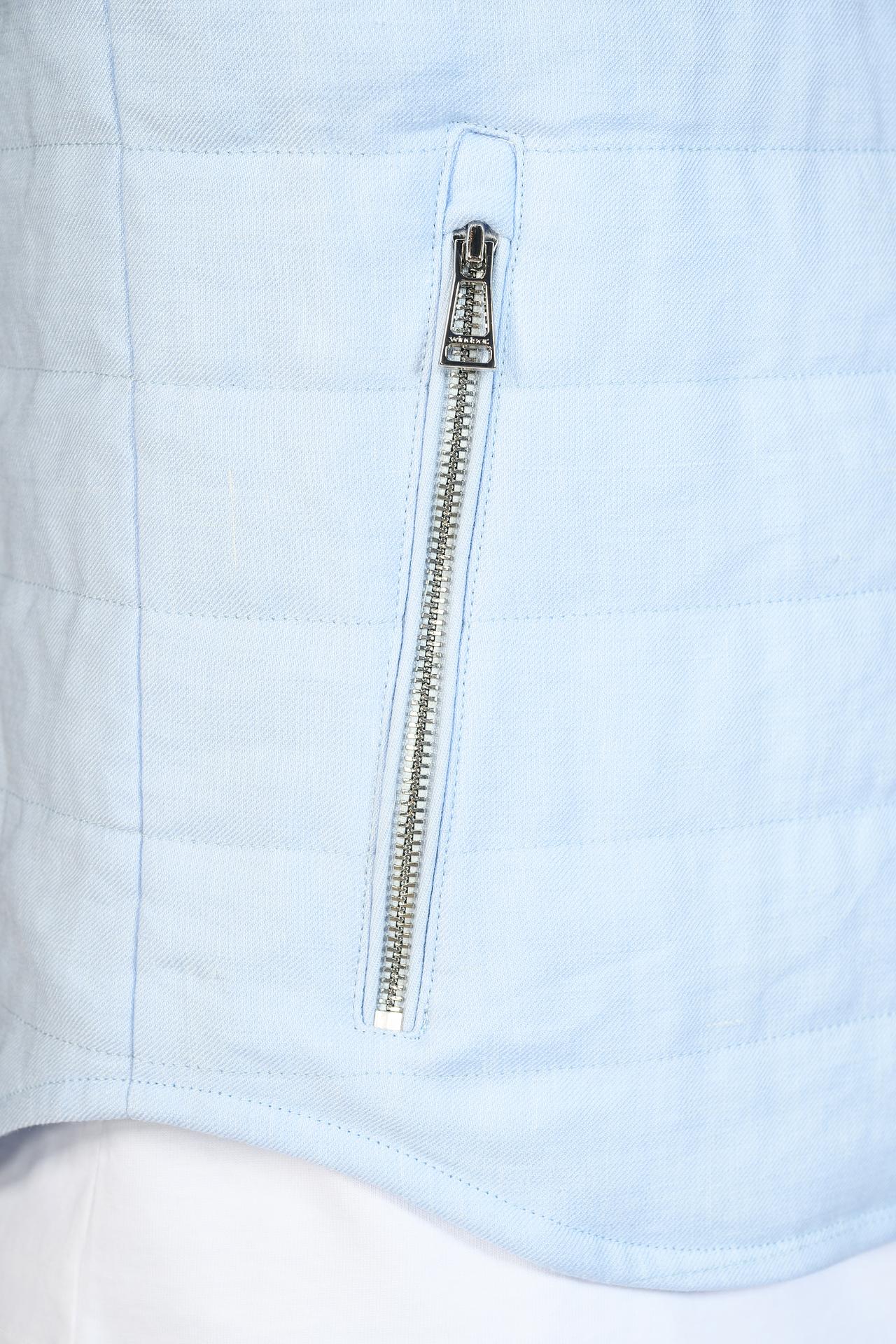 - Дизайн и крой: Жилет имеет приталенный крой, который выгодно подчеркивает фигуру. Воротник-стойка и застежка на пуговицы придают модели классический, но в то же время современный вид. Стеганая отделка добавляет текстуру и элегантность.