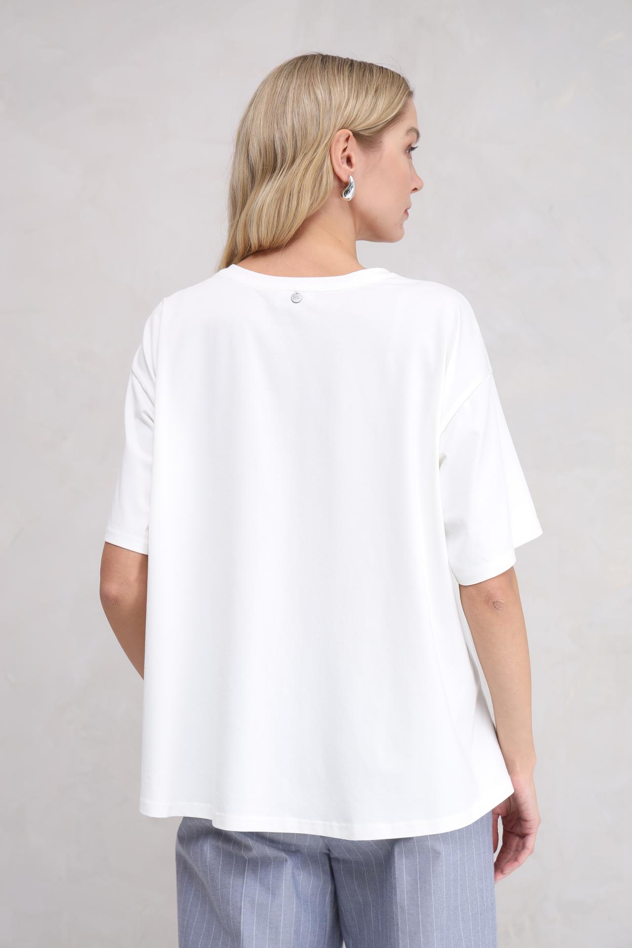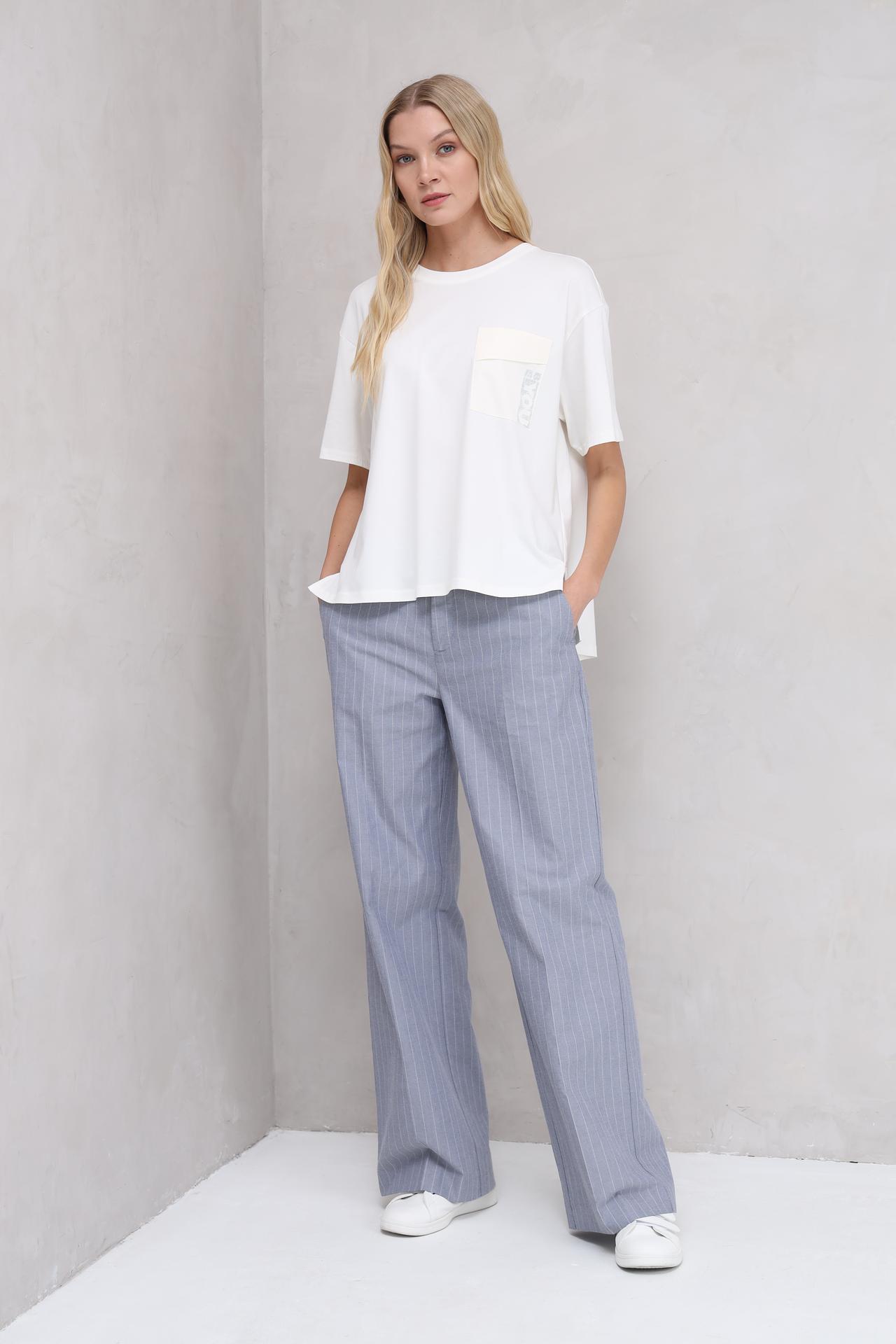 Оригинальная футболка You Just White – идеальный выбор для создания стильного и комфортного образа. Модель свободного кроя с короткими рукавами и круглым вырезом горловины выполнена из приятной к телу ткани. Изюминка дизайна – накладной карман с декоративной надписью.