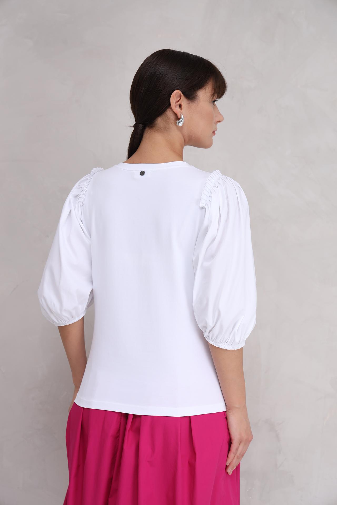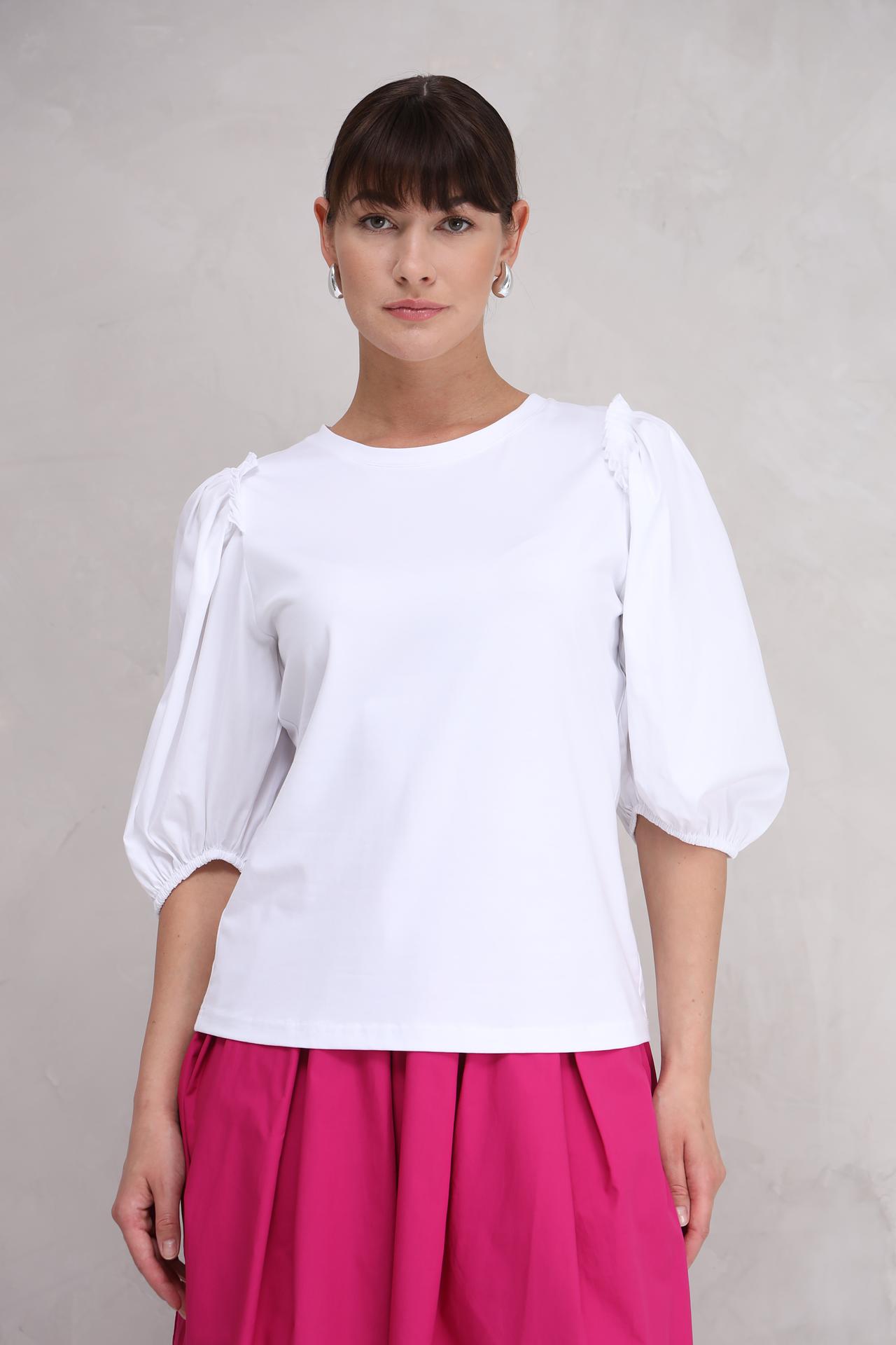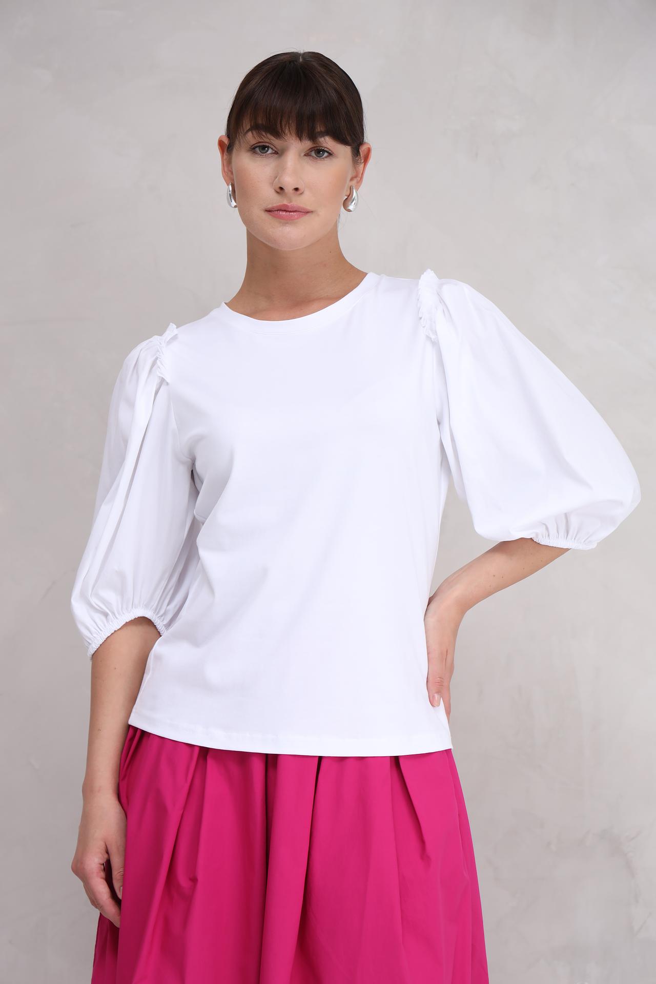 - Уникальный дизайн рукавов: Пышные рукава-буфы придают блузе неповторимый и модный вид, акцентируя внимание на плечах.