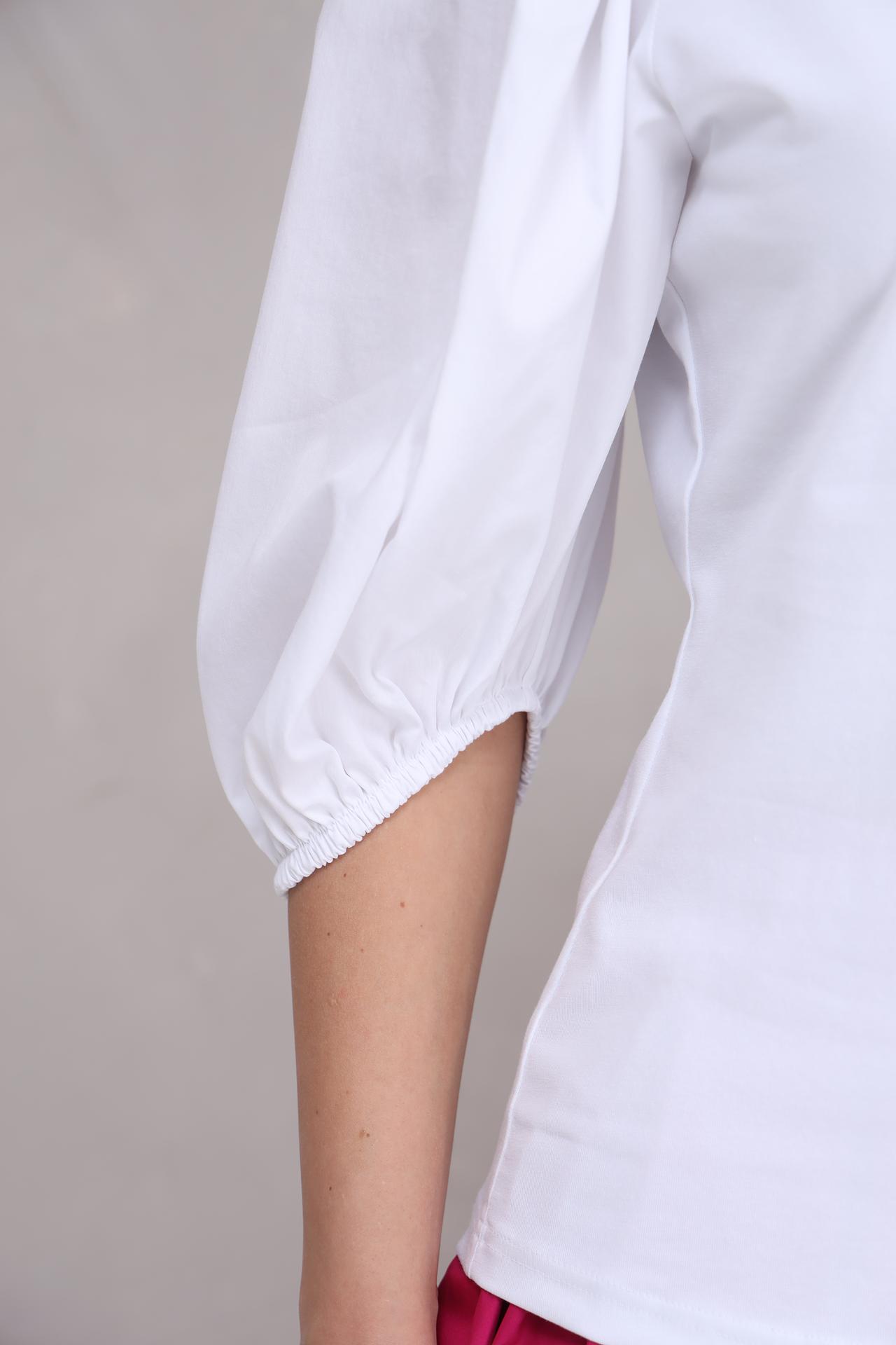 - Универсальный стиль: Белый цвет и классический крой позволяют легко сочетать блузу с различными элементами гардероба, создавая как деловые, так и повседневные образы.