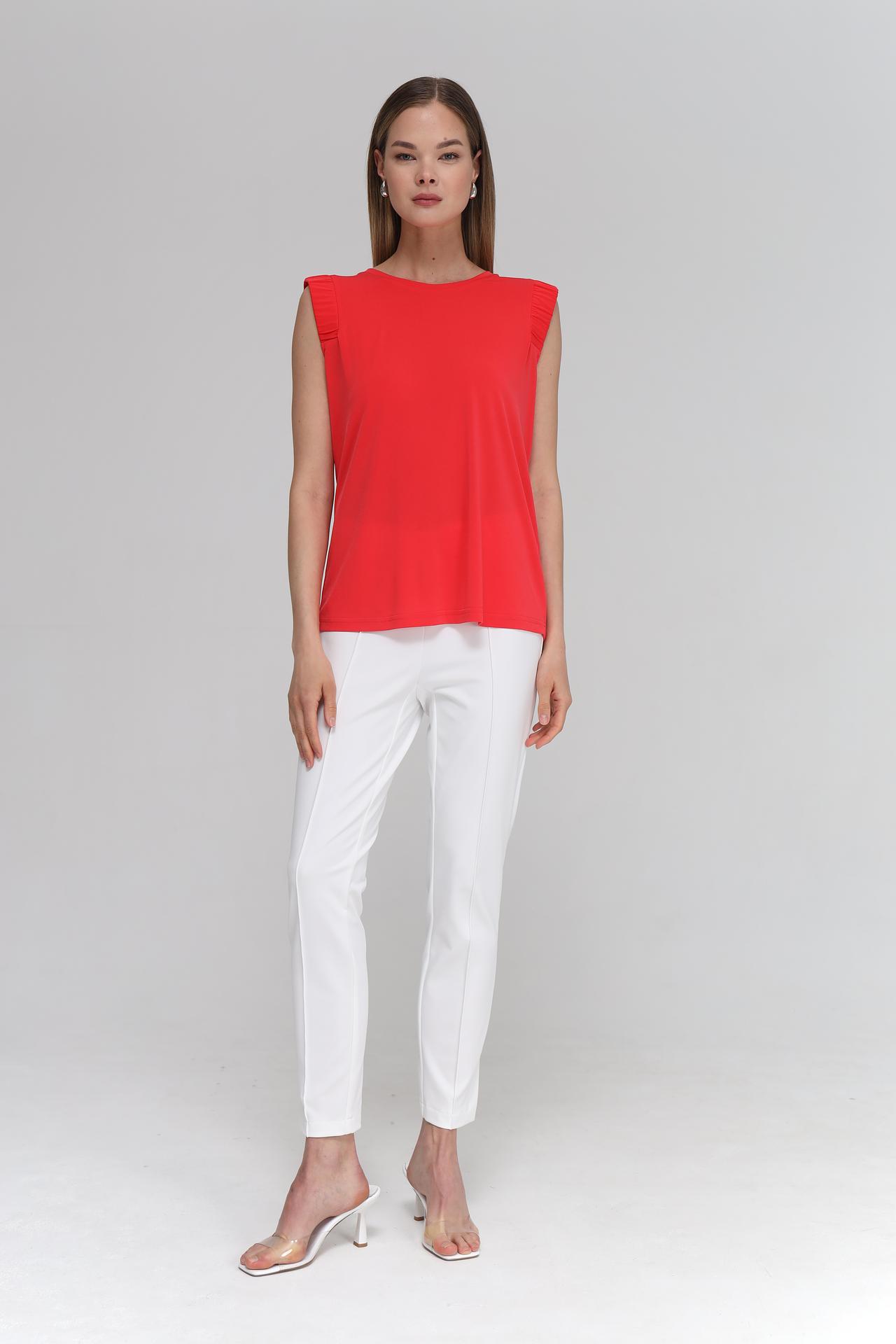 Лаконичный дизайн топа дополнен изящными складками на плечах, добавляющими женственности и изысканности. Глубокий красный цвет топа придаст вашему образу яркости и индивидуальности. Благодаря качественному материалу и безупречному крою, топ сохранит свою форму и цвет после многочисленных стирок.