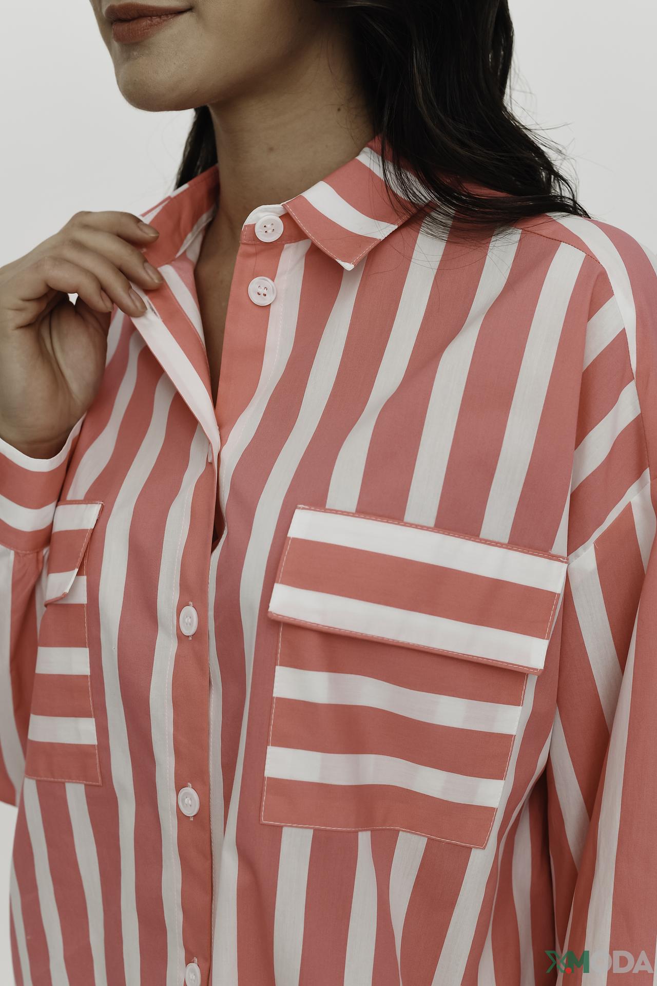 Рубашка имеет классический крой, что делает её универсальной для любого типа фигуры. Полосатый принт добавит яркости и подчеркнёт индивидуальность.