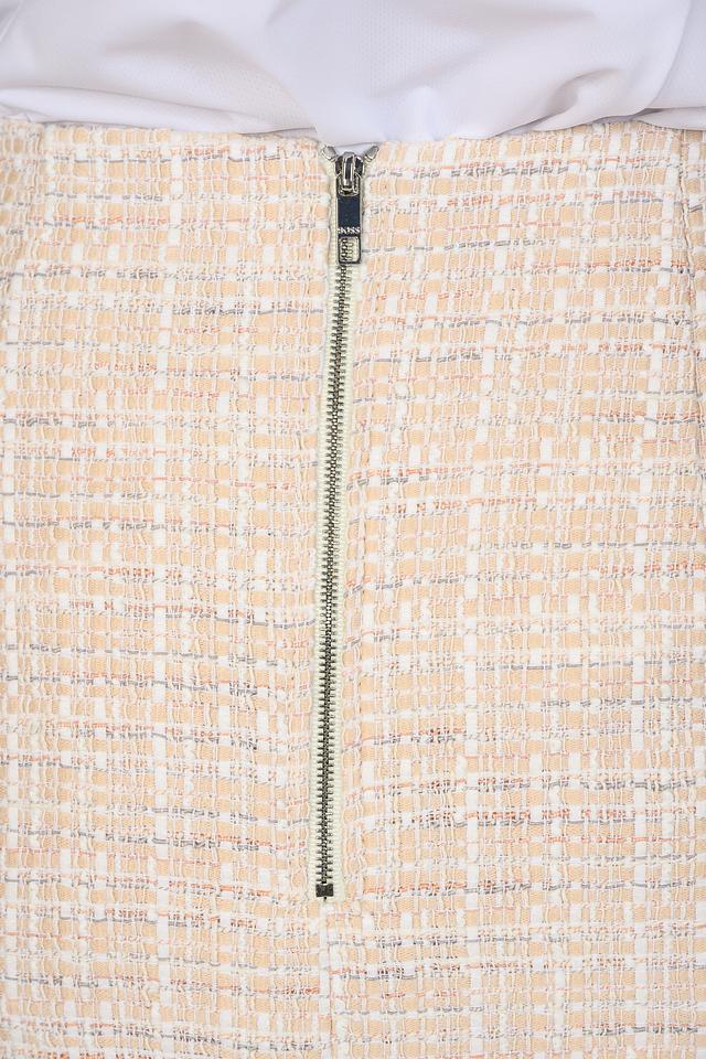 Юбка Boss Black бежевого цвета выполнена из твидовой ткани в клетку. Классический крой и длина до колена делают эту модель универсальным элементом гардероба. Состав: полиамид 41%, хлопок 39%, полиэстер 10%, акрил 10%