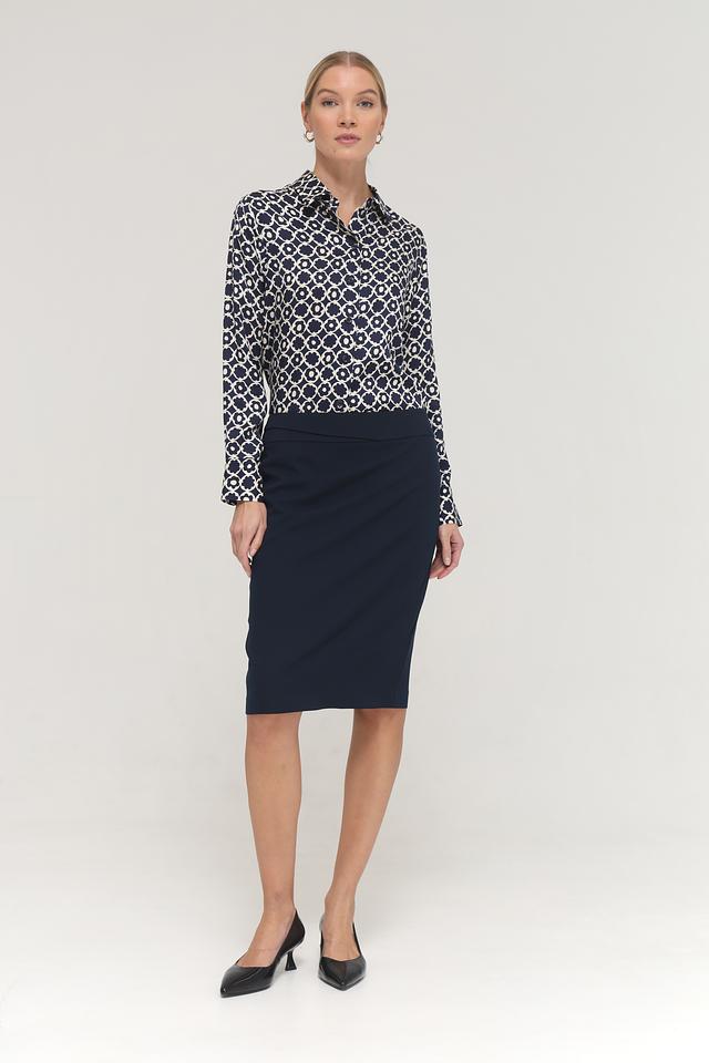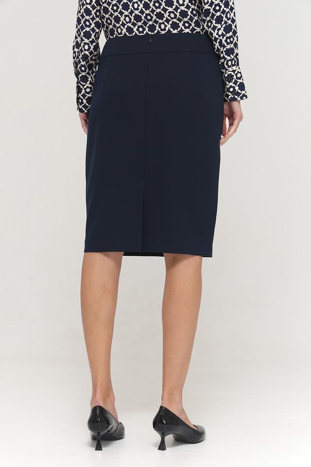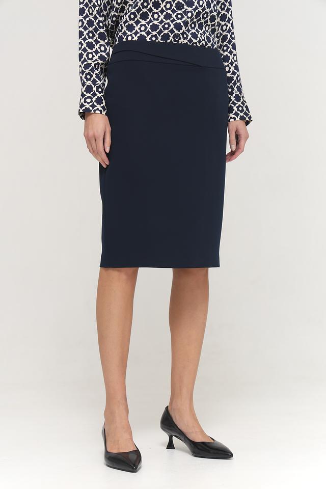 Темно-синяя юбка Frank Walder классического кроя, выполненная из гладкого полиэстера. Модель прямого силуэта и длиной до колена идеально подойдет для создания делового образа. Лаконичный дизайн и комфортная посадка. Состав: полиэстер 100%