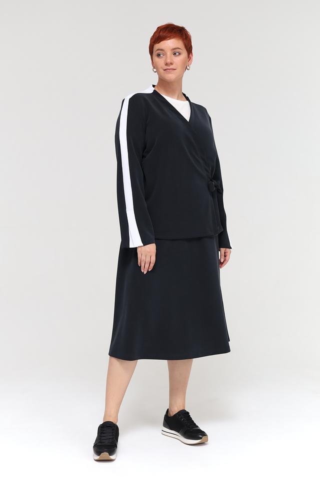 Благодаря своему универсальному черному цвету, эта юбка легко сочетается с различными топами, блузками и обувью. Она идеально подходит для работы, прогулок и других повседневных ситуаций. Состав ткани: модал 50%, полиэстер 40%, эластан 10%.