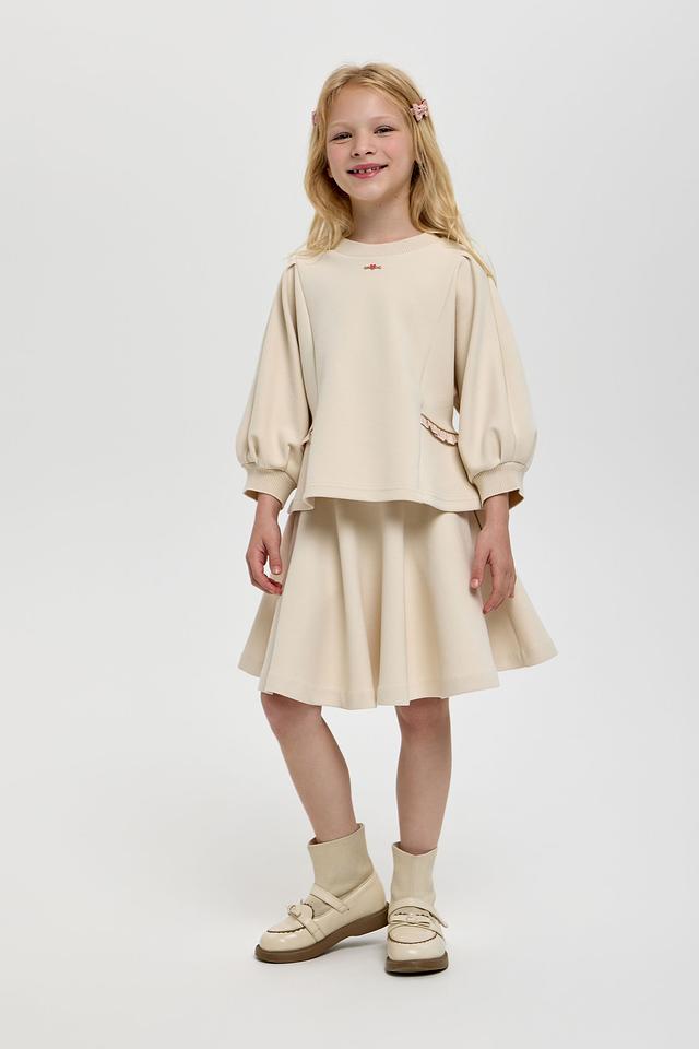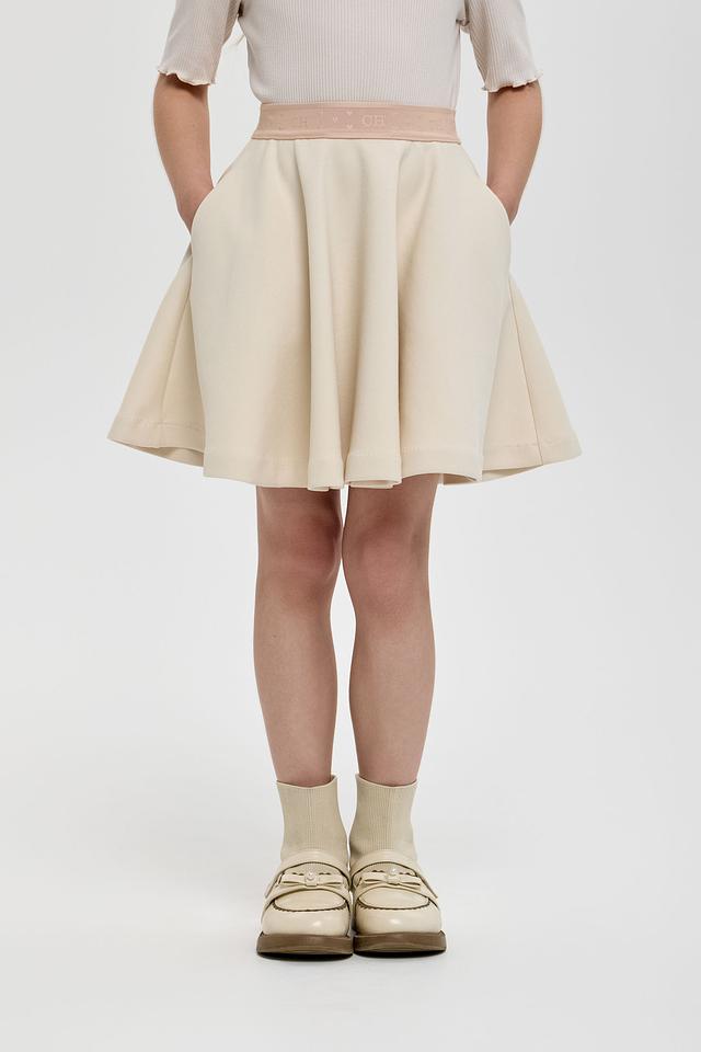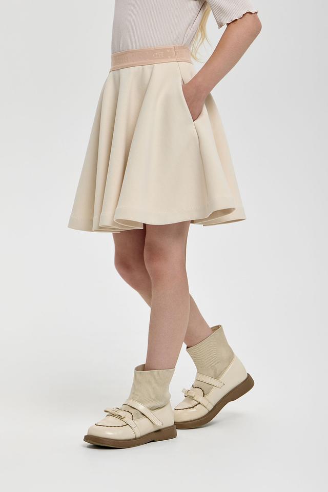 Юбка имеет классический расклешенный силуэт, который подчеркивает юный возраст и придает образу игривость. Удобный эластичный пояс обеспечивает комфортную посадку, а боковые карманы добавляют практичности.