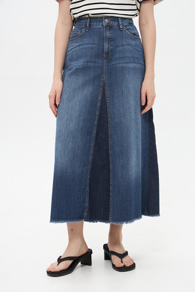 Застежка на молнию и пуговицу обеспечивает надежную фиксацию. Два задних кармана добавляют практичности. Небольшой бахромчатый край по низу придает юбке современный вид. Состав: 98% хлопок, 2% эластан.