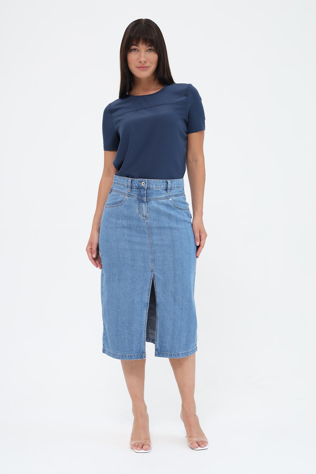 - Дизайн и крой: Юбка миди с прямым силуэтом и функциональным передним разрезом создает современный и элегантный образ. Классический джинсовый стиль универсален и легко сочетается с различными элементами гардероба.
