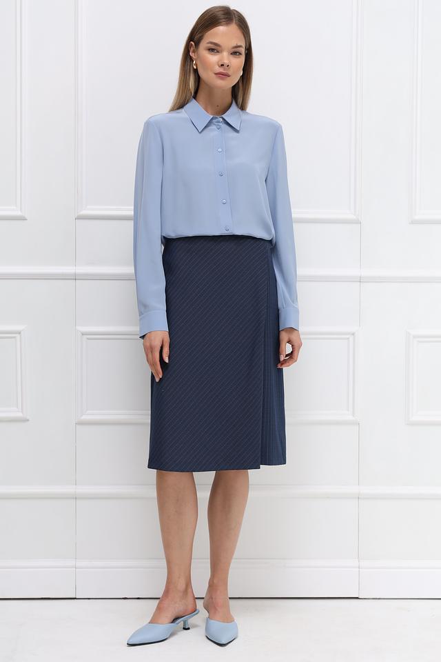 Юбка имеет классическую длину миди и прямой крой, обеспечивающий свободу движений. Изготовлена из смеси полиэстера и вискозы, что делает ее приятной на ощупь и практичной в носке.
