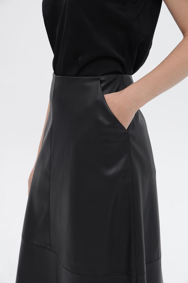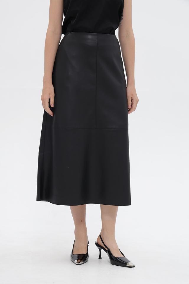 Чёрная юбка миди от Lecomte из экокожи. Классический крой и длина до середины икры делают эту модель универсальной основой для создания стильных образов. Состав: полиэстер с полиуретановым покрытием. Состав: полиэстер с полиуретан.покрытием 100%