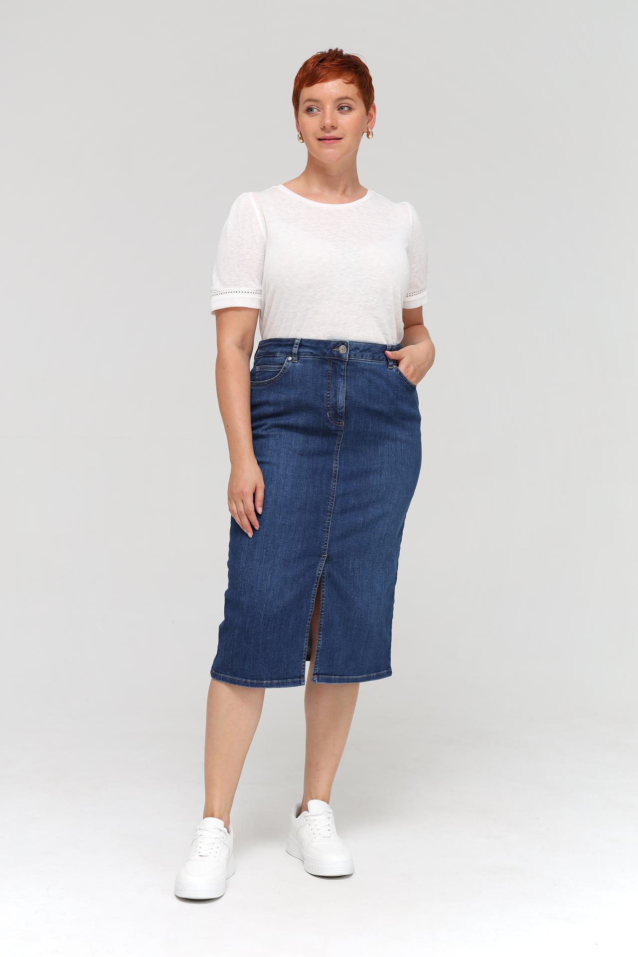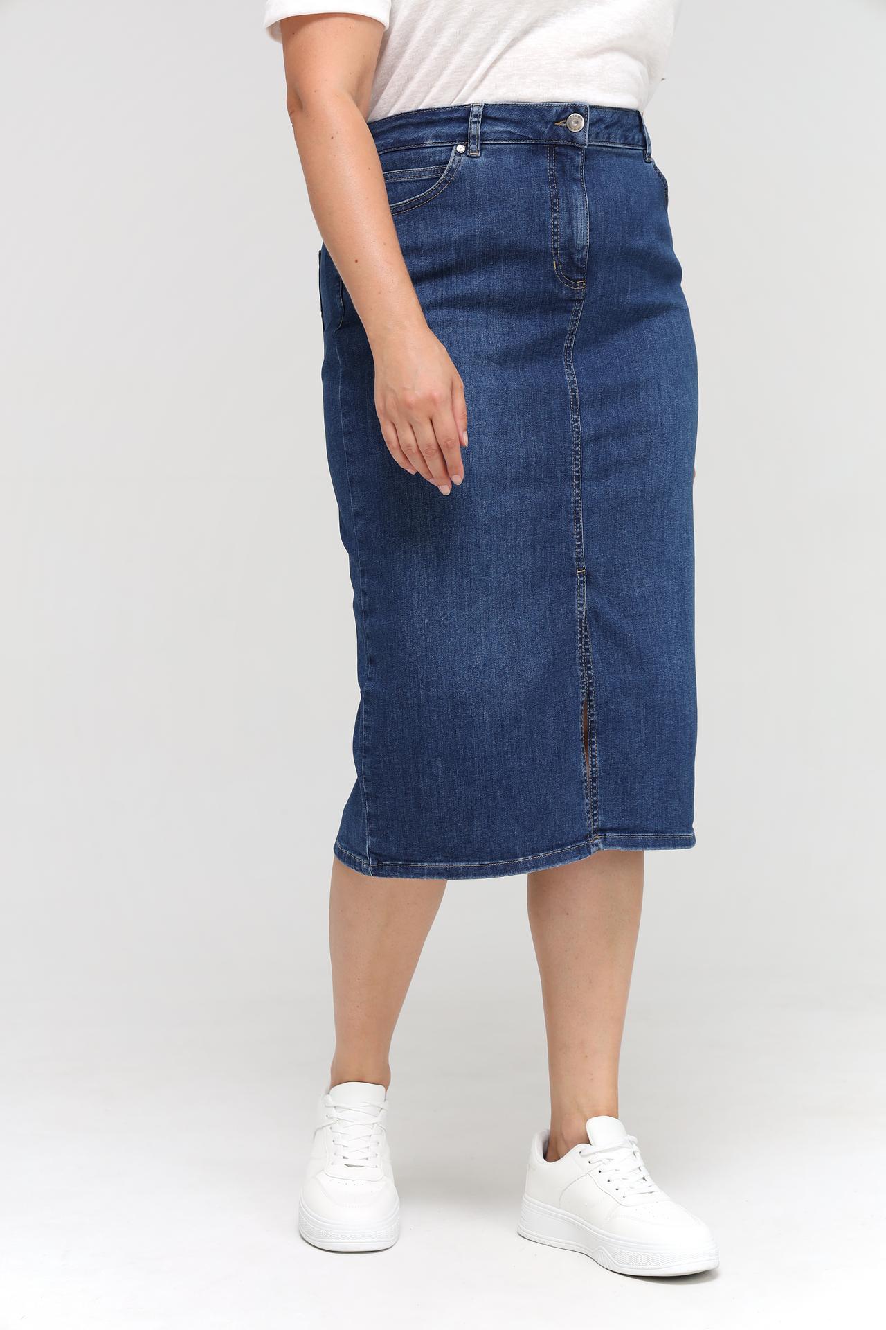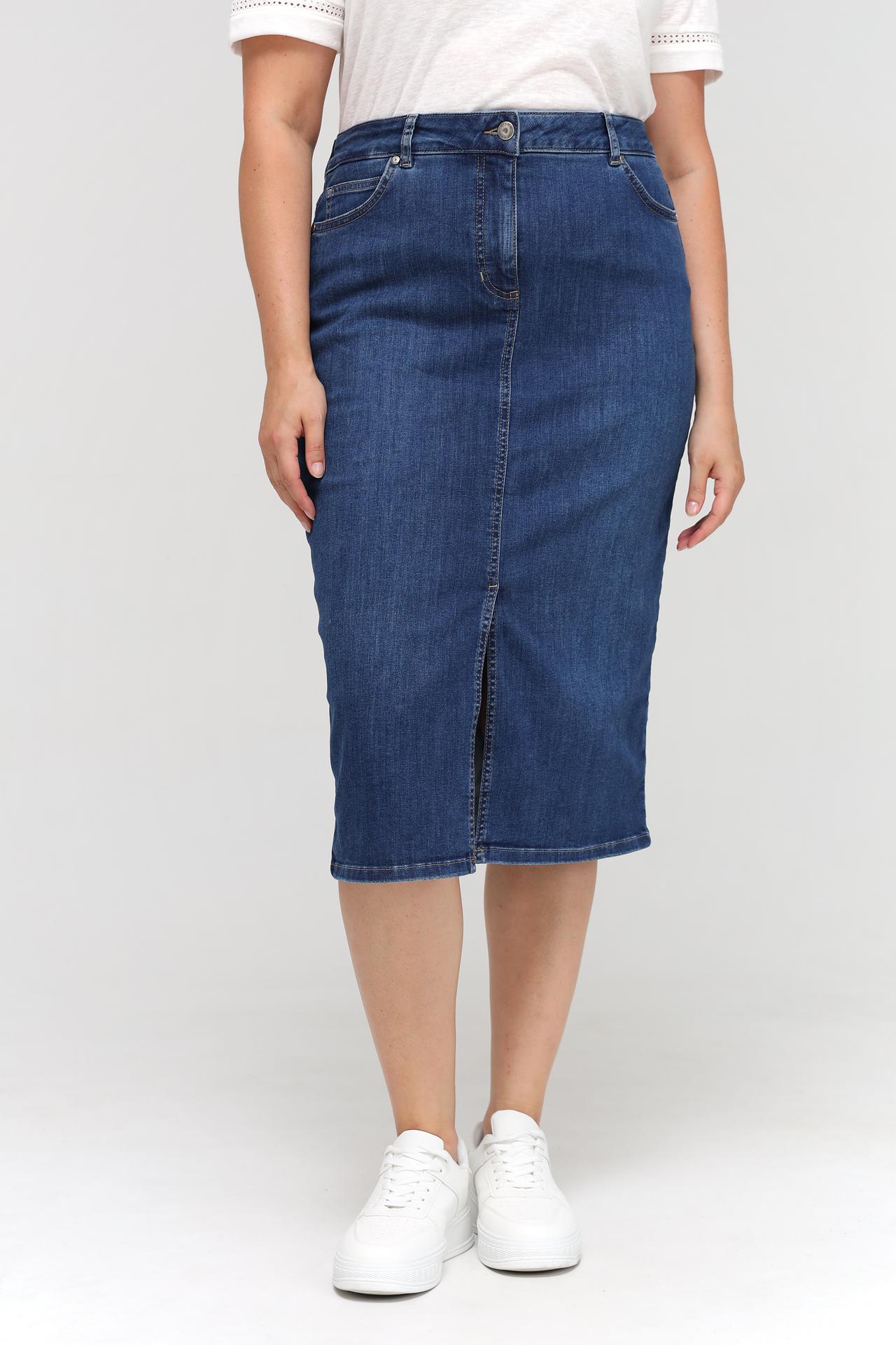 - Стильный дизайн: Классический джинсовый цвет и разрез спереди делают эту юбку модной и актуальной.
