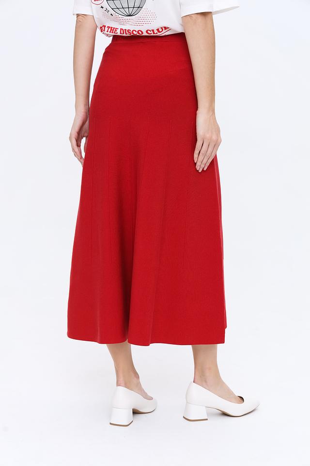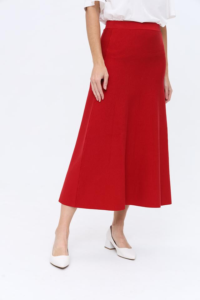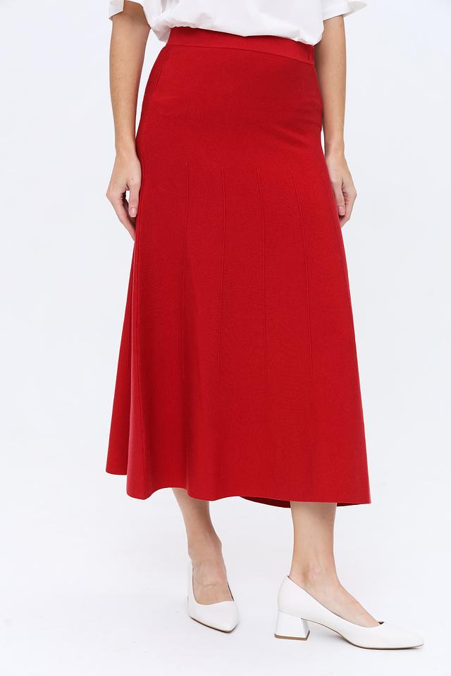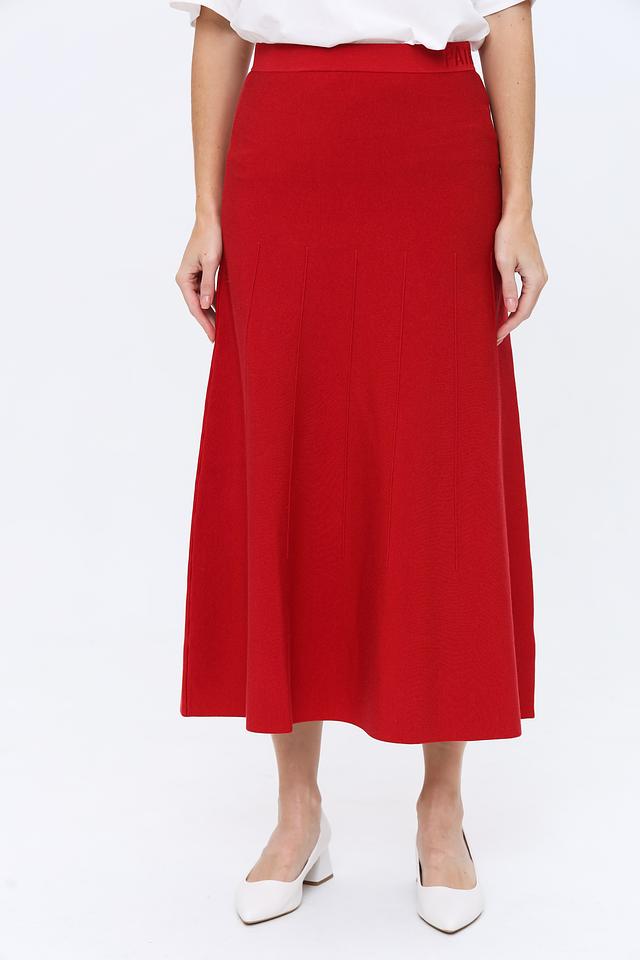 Красная миди-юбка от Patrizia Pepe выполнена из трикотажа с вертикальной текстурой. Модель имеет эластичный пояс и слегка расклешенный силуэт, обеспечивающий комфортную посадку. Состав: Состав_2 полиэстер 100%, луоселл 37%, вискоза 28%, полиамид 20%, хлопок 13%, эластан 2%