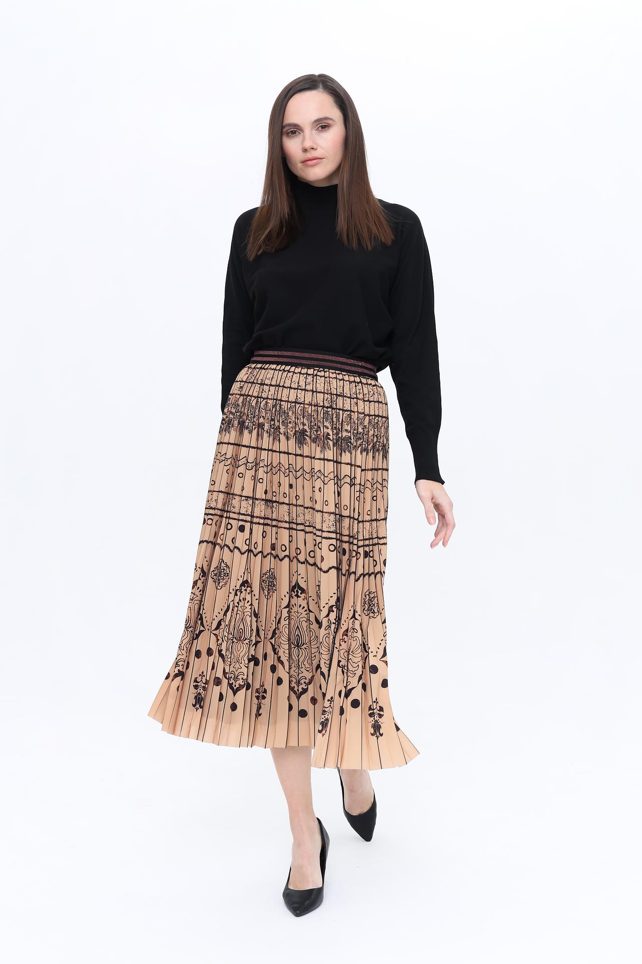 Юбка плиссе Leo & Ugo бежевая с рисунком