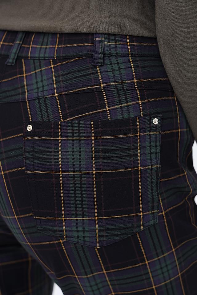 Брюки выполнены из высококачественного хлопка (93%) с добавлением эластана (7%), что обеспечивает комфорт при носке, хорошую посадку и сохранение формы. Клетка выполнена в сочетании зеленого, черного и бежевого цветов, создавая эффектный и запоминающийся дизайн.