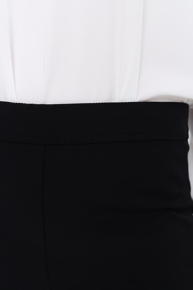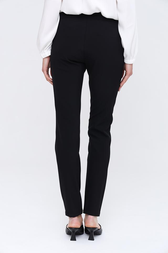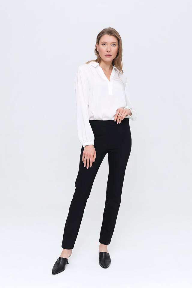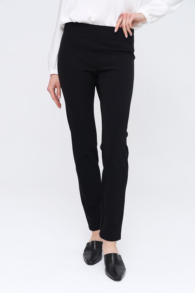 Брюки имеют прямой крой, который визуально удлиняет силуэт и обеспечивает комфортную посадку. Эластичный пояс обеспечивает удобство в носке и позволяет брюкам идеально прилегать к фигуре.