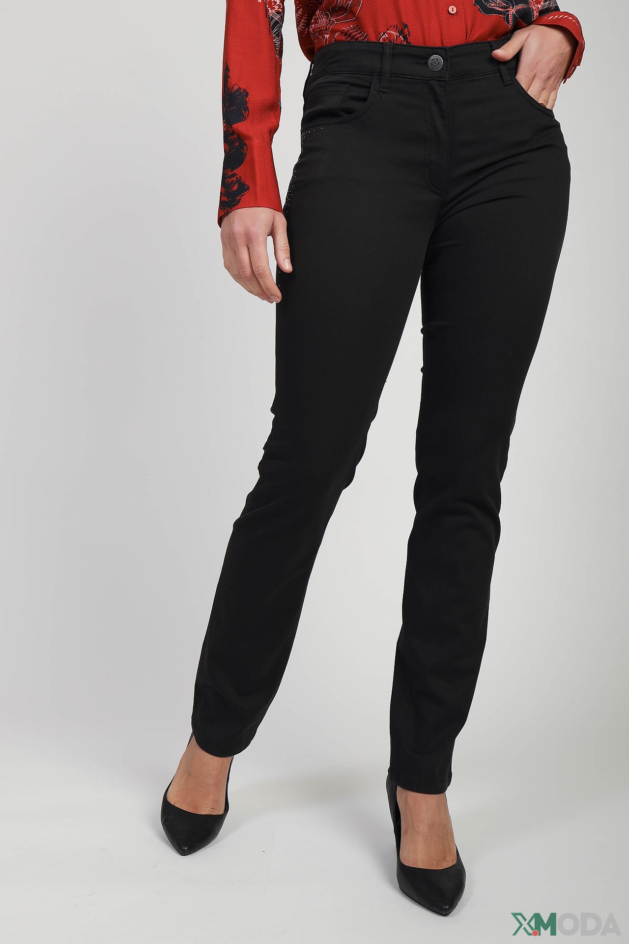 Джинсы Zerres – идеальное сочетание комфорта и стиля для современной женщины. Модель выполнена в классическом чёрном цвете, который легко впишется в любой гардероб. Оригинальный дизайн дополнен деликатным декором из страз на задних карманах, добавляя изысканности.