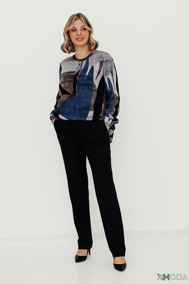 Брюки имеют прямой крой, который обеспечивает комфортную посадку и свободу движений. Ткань, состоящая из полиэстера, вискозы и эластана, приятна на ощупь, хорошо держит форму и практически не мнется.