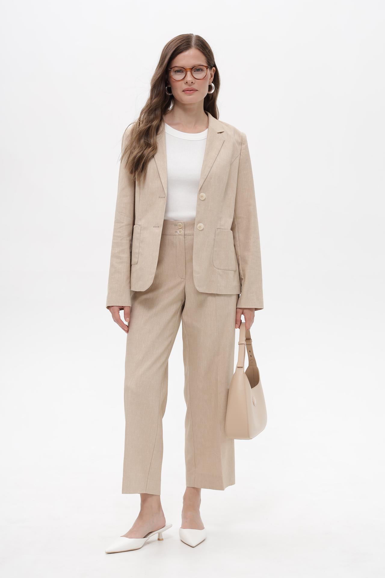- Универсальный силуэт: Приталенный крой жакета подчеркивает фигуру и позволяет создавать разнообразные стильные образы.