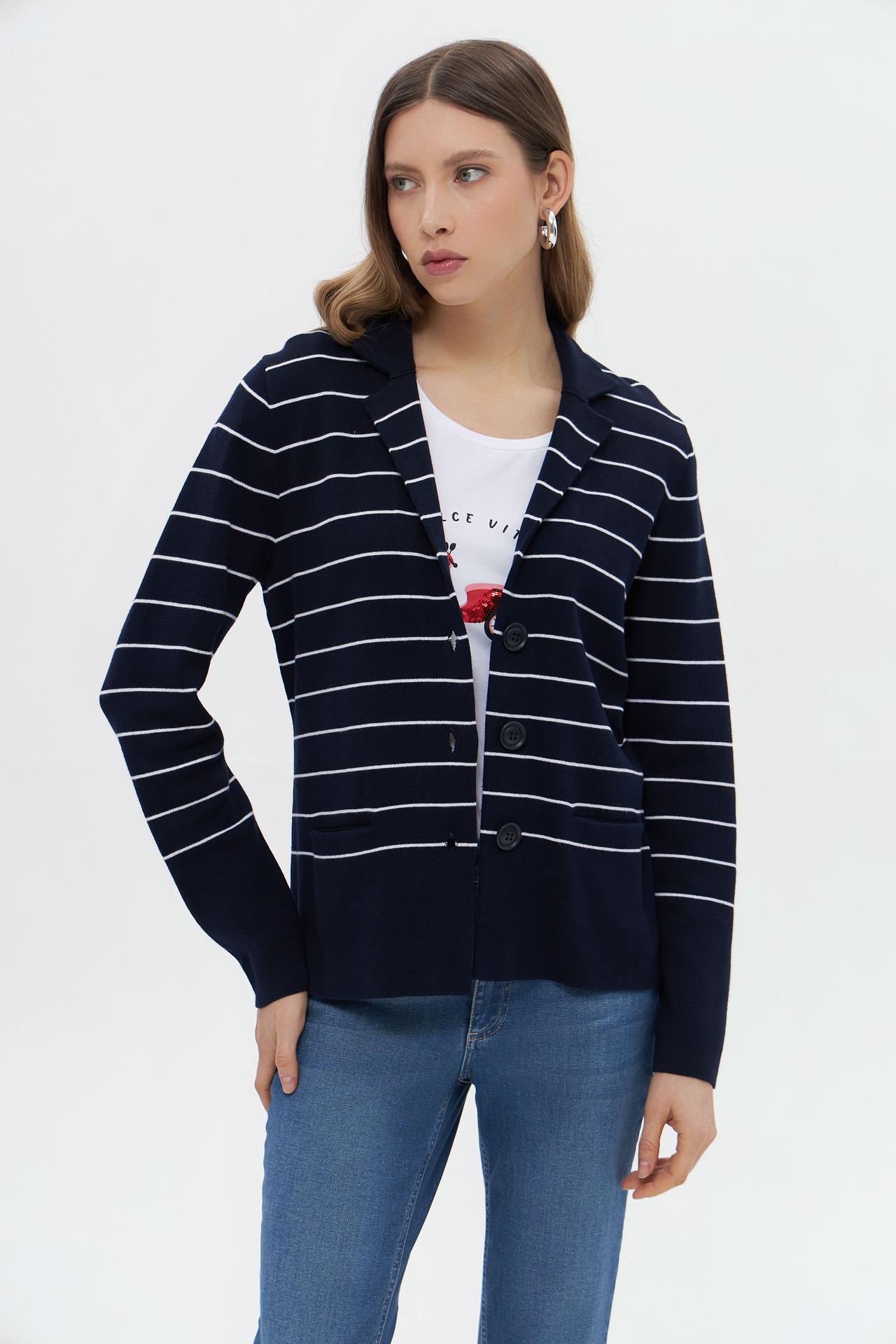 Жакет Bianca в полоску, темно-синий, с накладными карманами
