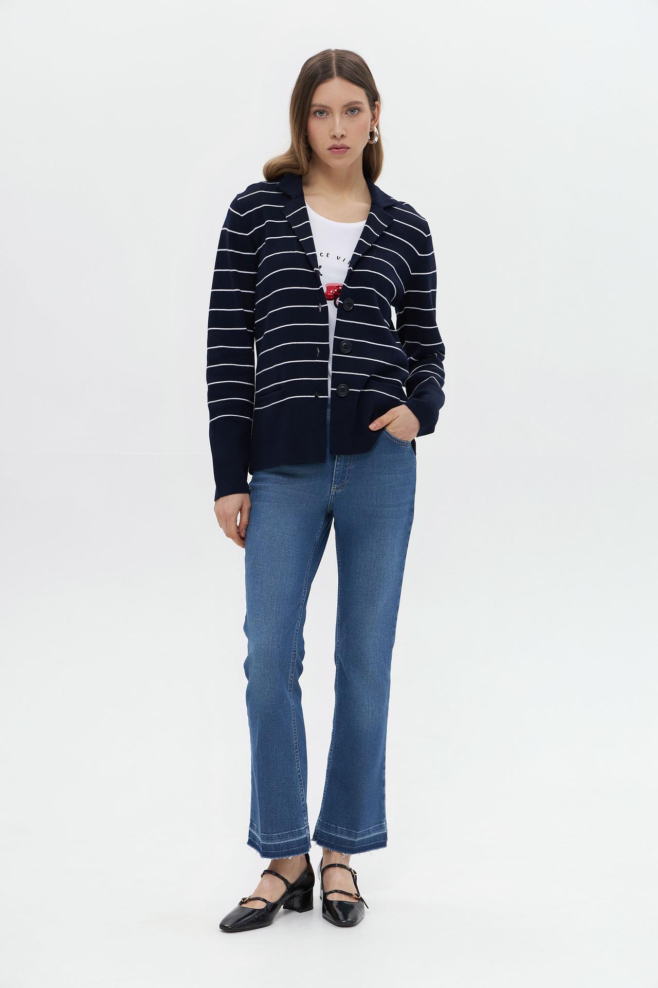 - Классический дизайн: Жакет в полоску с накладными карманами подчеркнет вашу элегантность и чувство стиля.