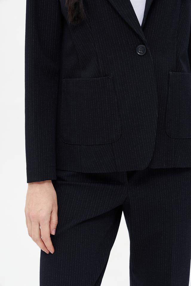 Жакет Bianca темно-синего цвета с тонкой полоской станет отличным дополнением к вашему гардеробу. Классический крой и лаконичный дизайн делают его универсальным выбором для создания стильных образов. Состав: полиэстер 40%, вискоза 30%, полиамид 25%, эластан 5%