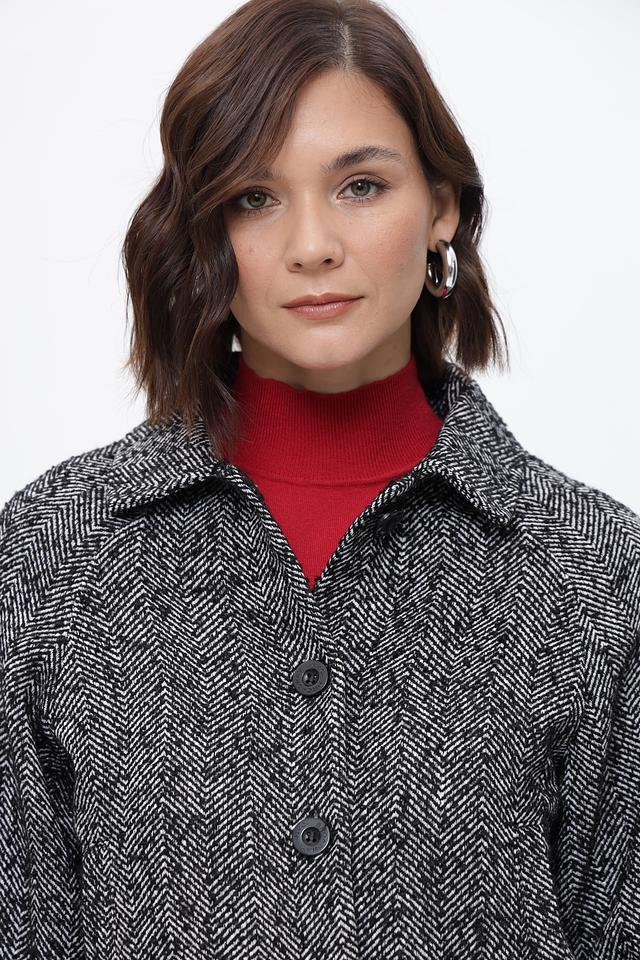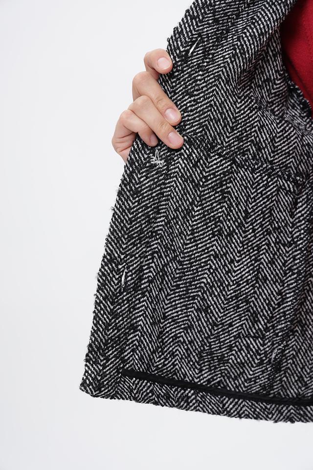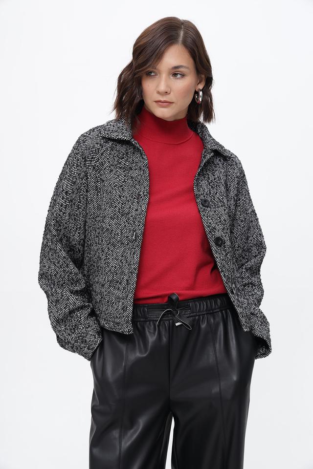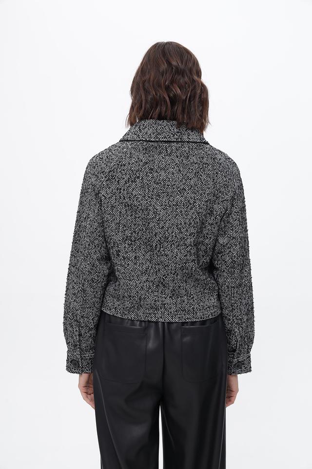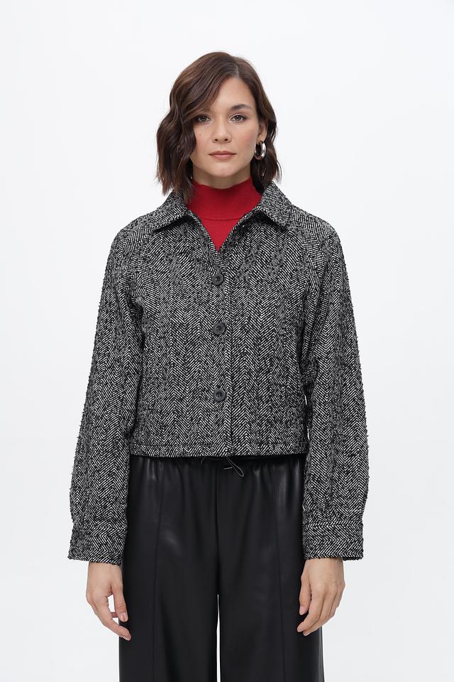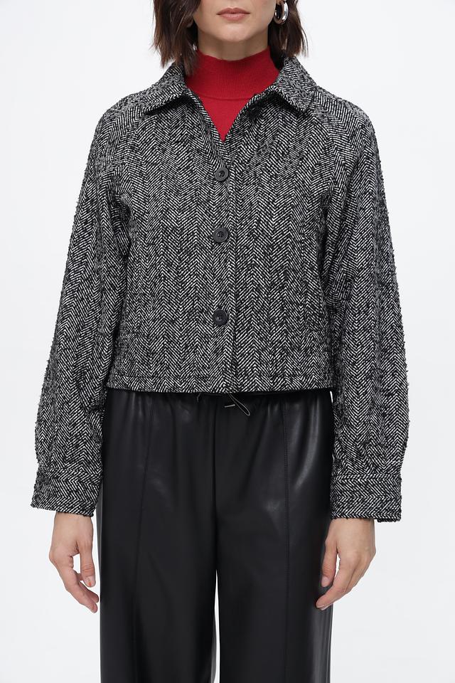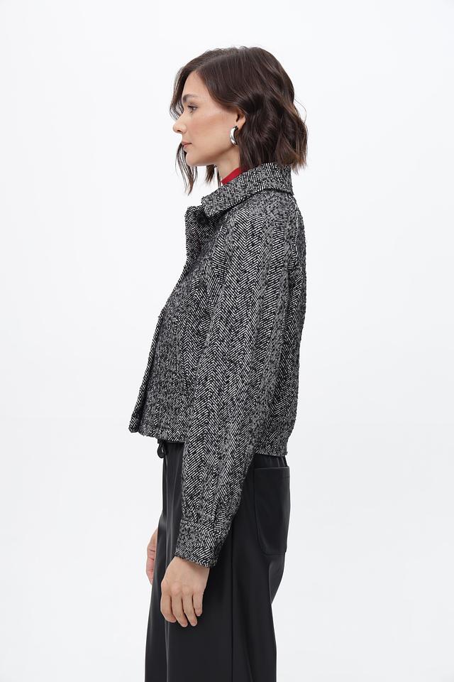 Жакет от бренда Broadway выполнен в классической клетке, сочетающей чёрный и белый цвета. Изделие имеет укороченный крой и лаконичный дизайн, что делает его универсальным дополнением к любому гардеробу.