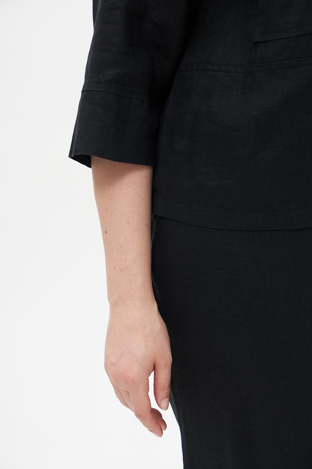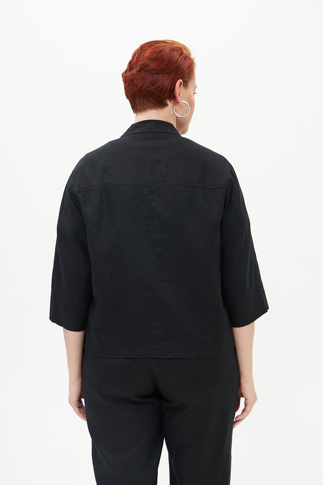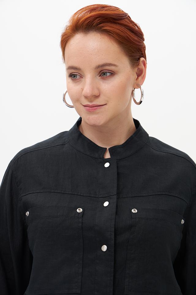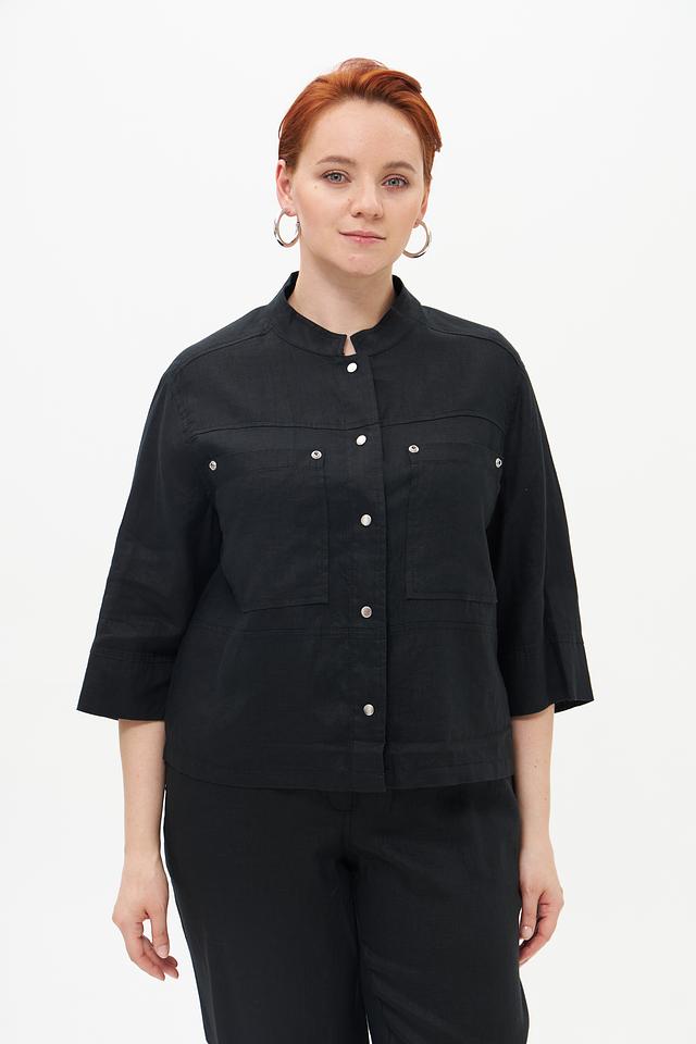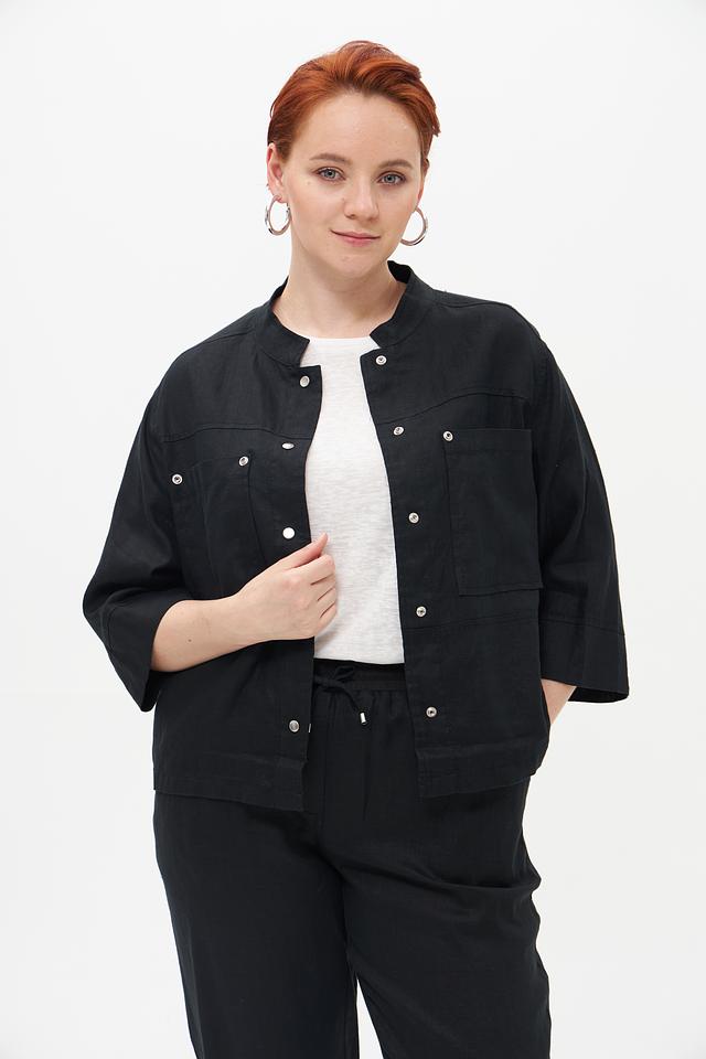 Чёрный жакет от Doris Streich из 100% льна. Стильная модель с короткими рукавами и накладными карманами. Идеальный выбор для создания комфортных и элегантных образов. Состав: лен 100%