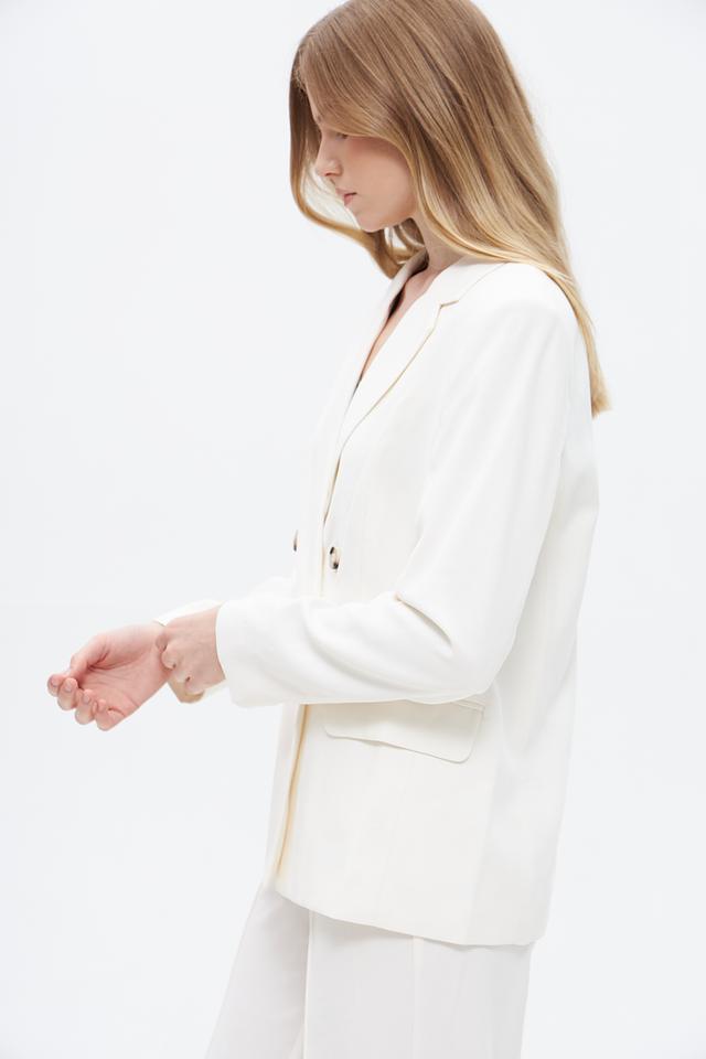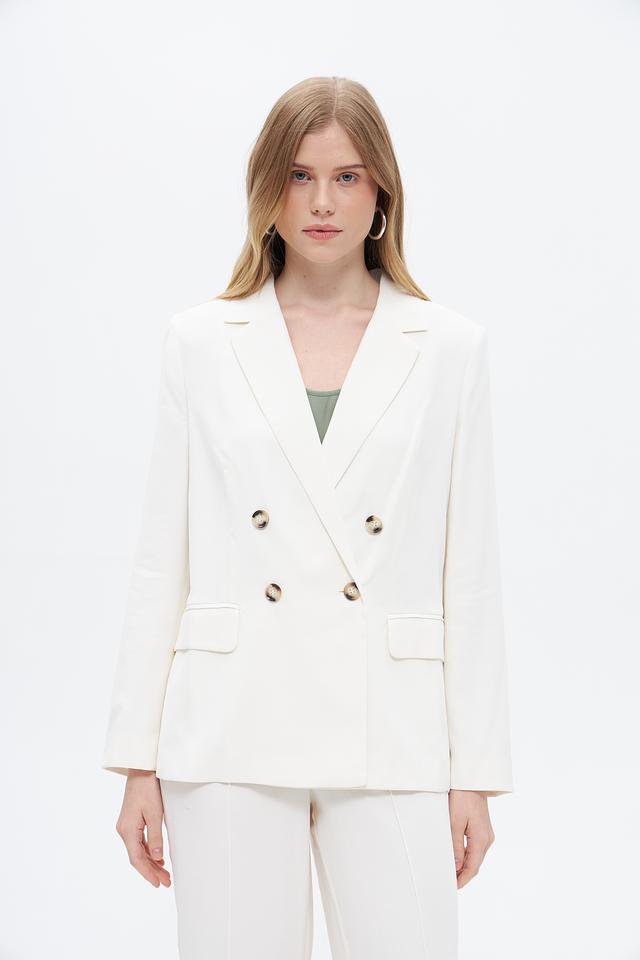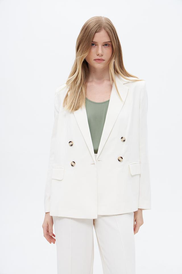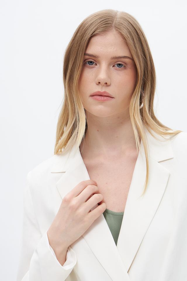Этот жакет от Oui станет прекрасным дополнением к вашему гардеробу. Классический крой и нейтральный кремовый цвет делают его универсальным выбором для создания различных образов.