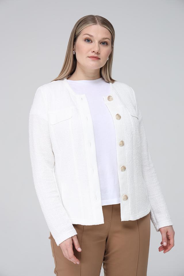 Белый жакет Frank Walder из фактурной ткани станет стильным дополнением к вашему гардеробу. Модель с застежкой на пуговицы и накладными карманами подчеркнет вашу индивидуальность и женственность. Состав: полиэстер 51%, хлопок 29%, вискоза 20%