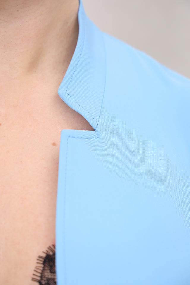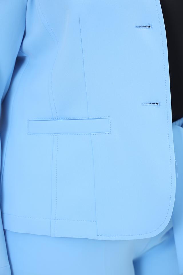 Этот жакет от Frank Walder станет прекрасным дополнением к вашему гардеробу. Модель выполнена в нежном голубом цвете и имеет приталенный силуэт, который подчеркнет достоинства фигуры.