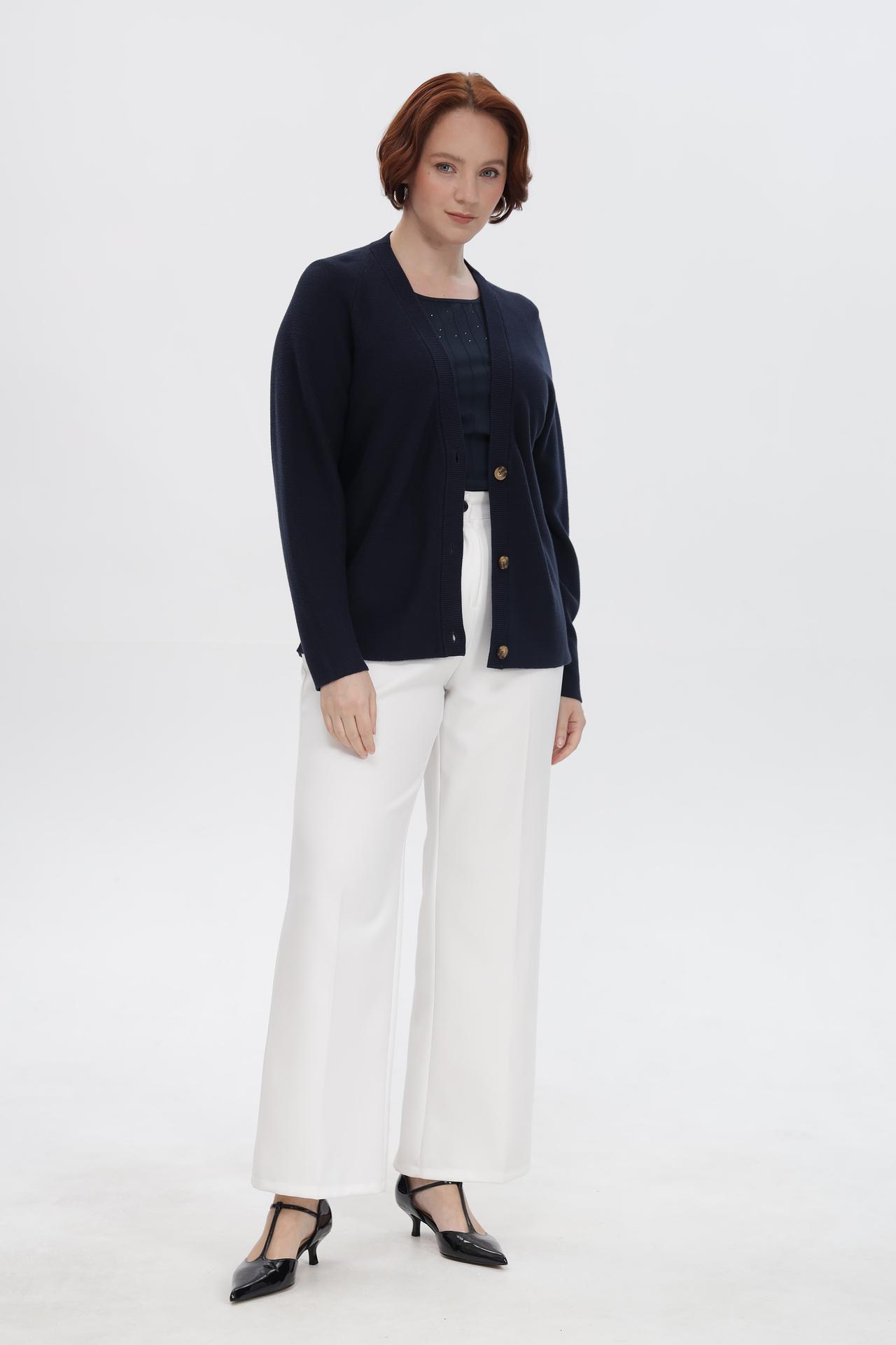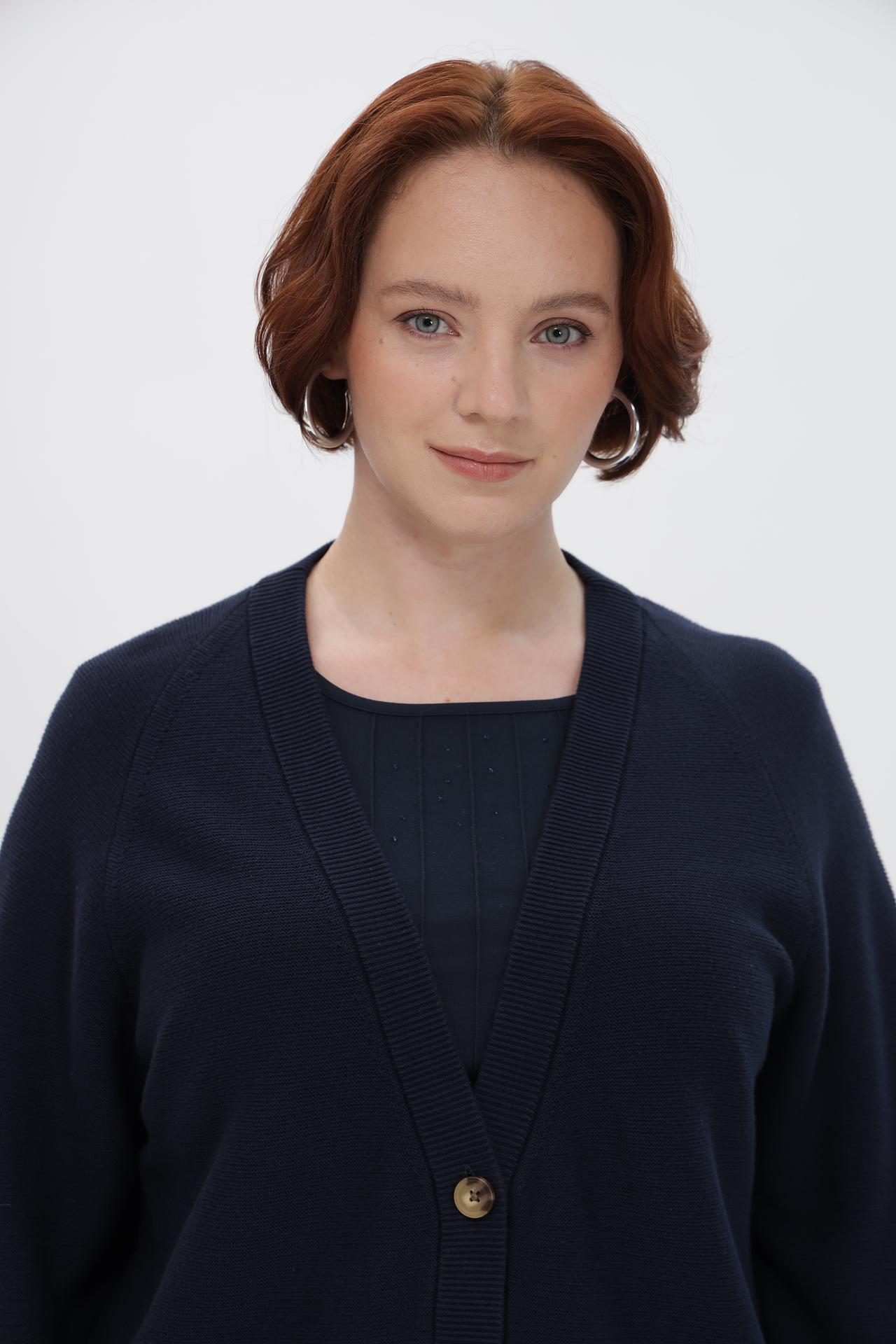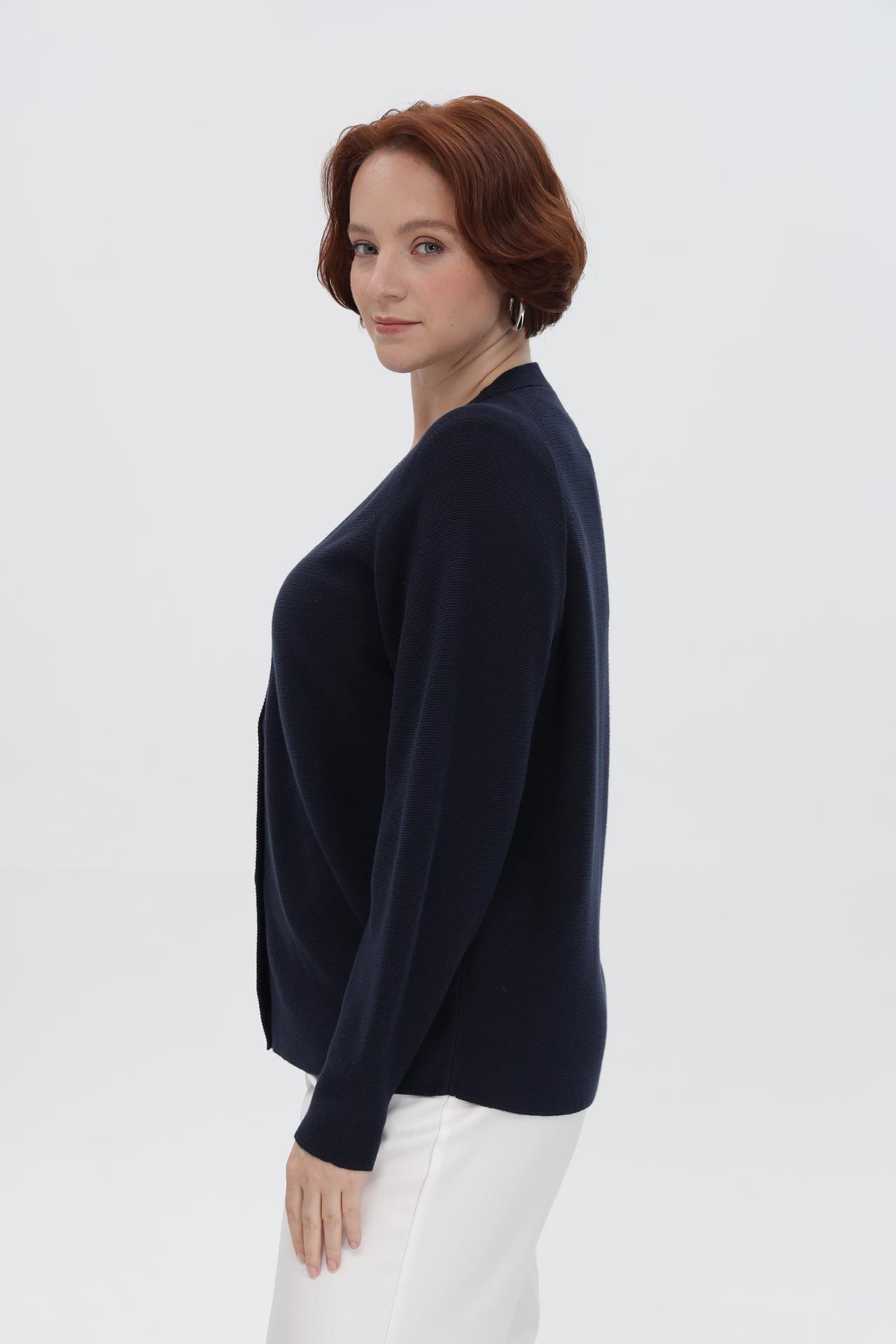 - Дизайн: Классический крой с V-образным вырезом и застежкой на пуговицы. Универсальная модель, которая легко вписывается в различные стильные образы.
