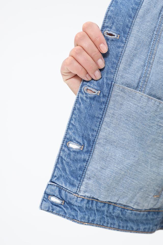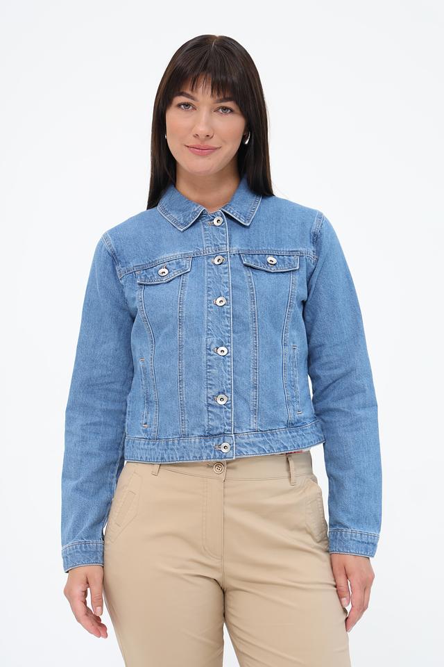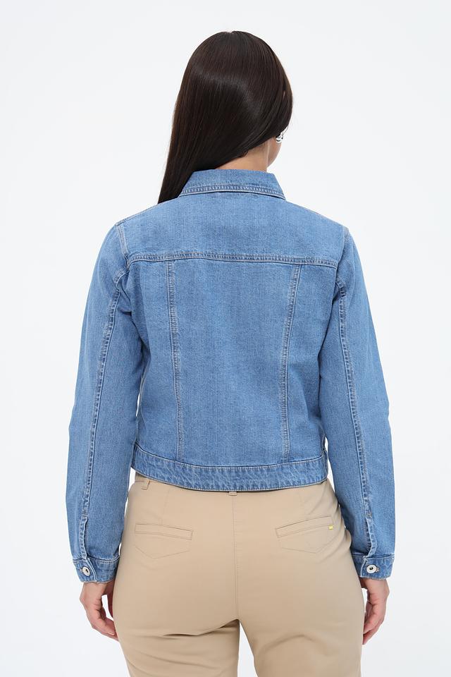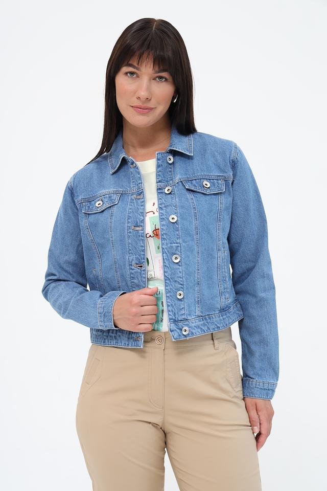 Модель имеет классический крой с длинными рукавами и отложным воротником. Застежка на пуговицы позволяет регулировать силуэт и создавать различные образы. Жакет идеально подходит для повседневной носки и легко сочетается с джинсами, брюками или юбками.