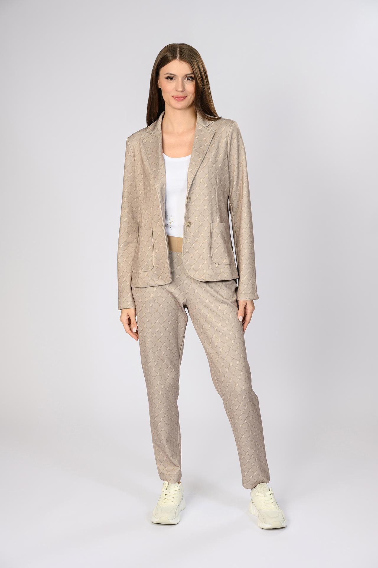 - Классический крой: Жакет имеет прямой силуэт, который подходит для любой фигуры и легко сочетается с разными стилями.