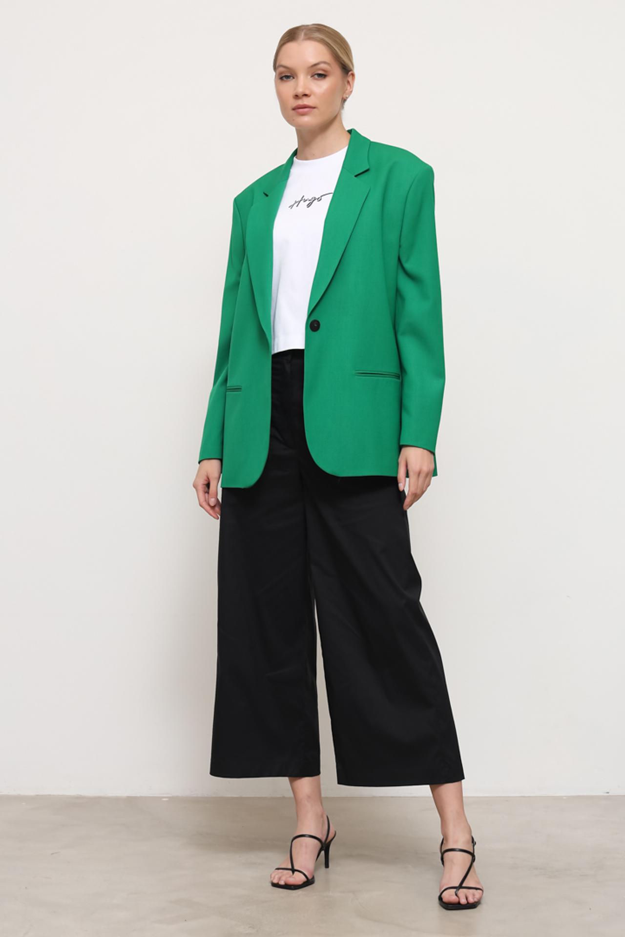 - Универсальный дизайн. Классический крой позволяет легко интегрировать жакет в деловой, вечерний или повседневный стиль, создавая разнообразные модные образы.