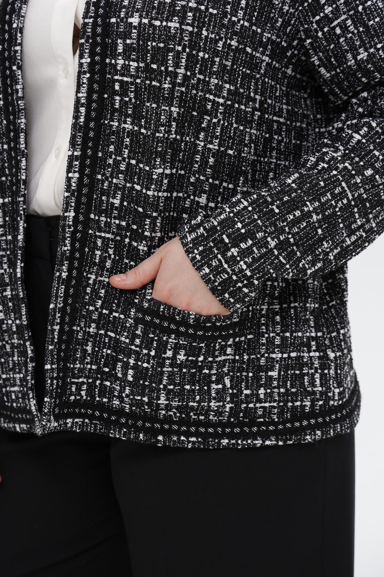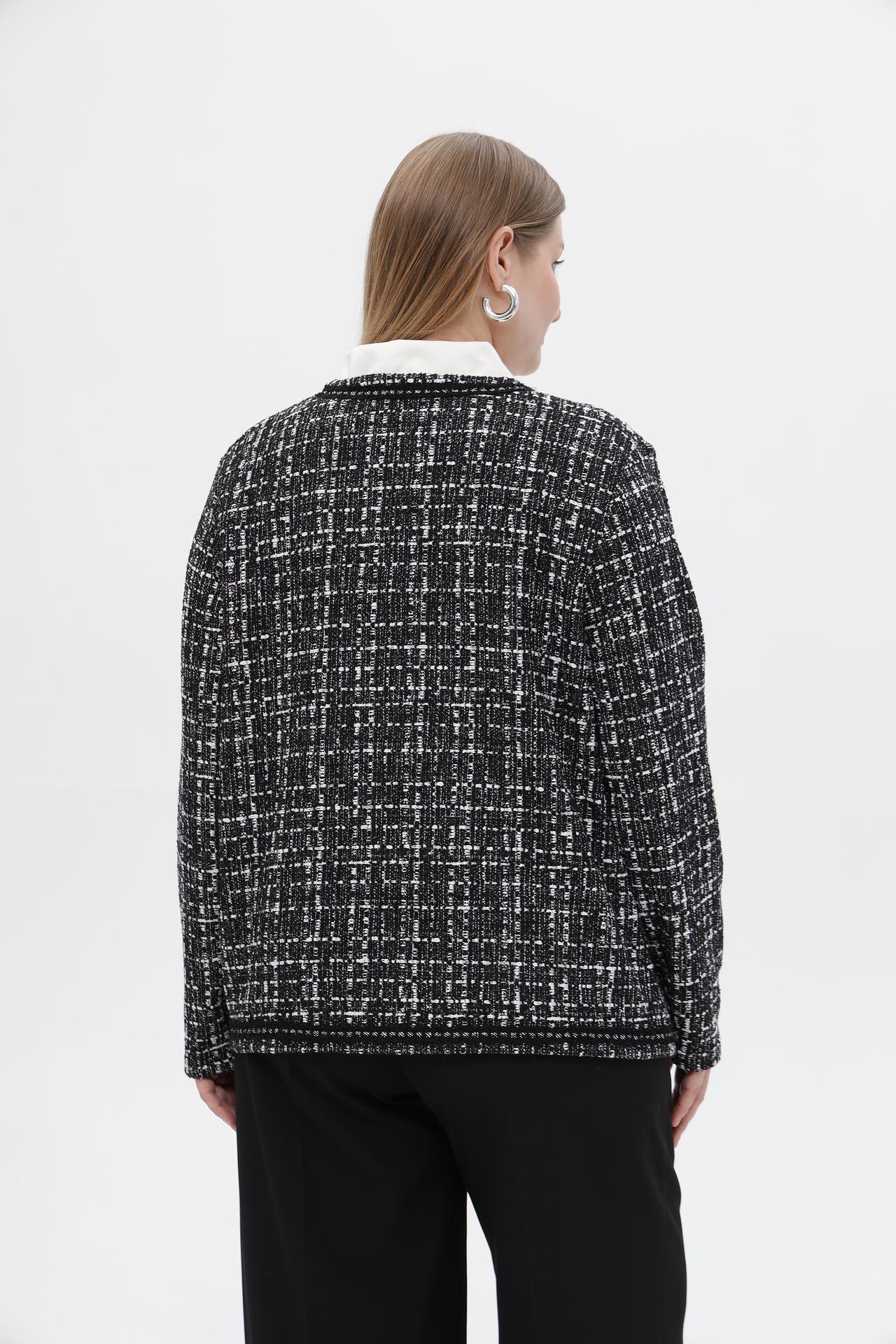 - Универсальность: Жакет легко сочетается с различными элементами гардероба — от блуз и рубашек до водолазок. Прекрасно подходит для создания как деловых, так и кэжуал образов.