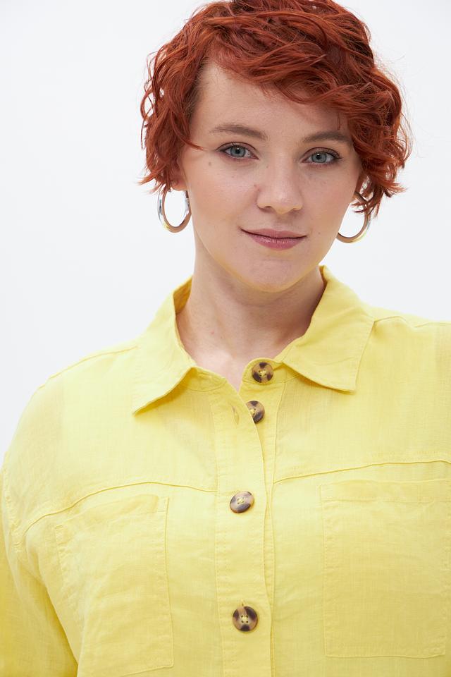Жёлтый жакет от Lebek из 100% льна – стильное и комфортное решение для создания модных образов. Прямой крой и застёжка на пуговицы делают его универсальным элементом гардероба. Состав: лен 100%
