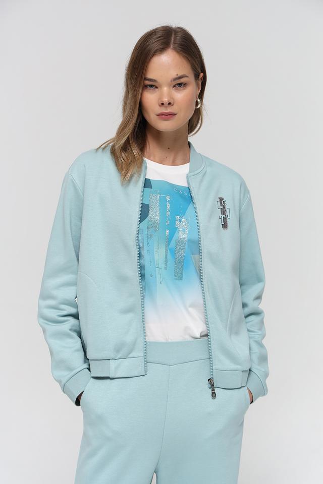 Жакет Lecomte цвета мятной зелени – стильная модель на молнии с декоративной вышивкой. Изготовлен из мягкого и приятного к телу модала с добавлением хлопка. Состав: модал 80%, хлопок 20%