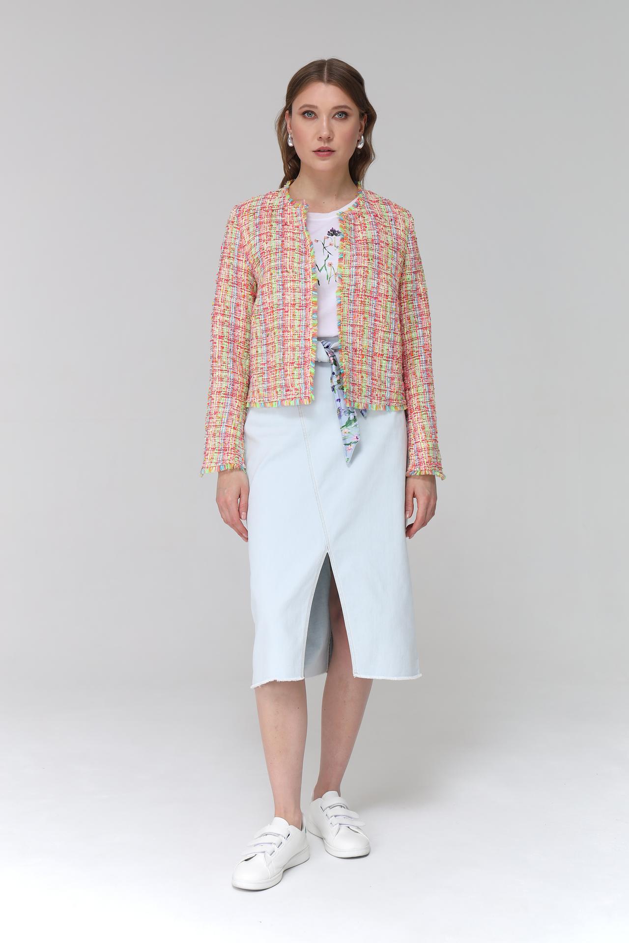 - Твидовая фактура: придает жакету изысканный и неповторимый вид.