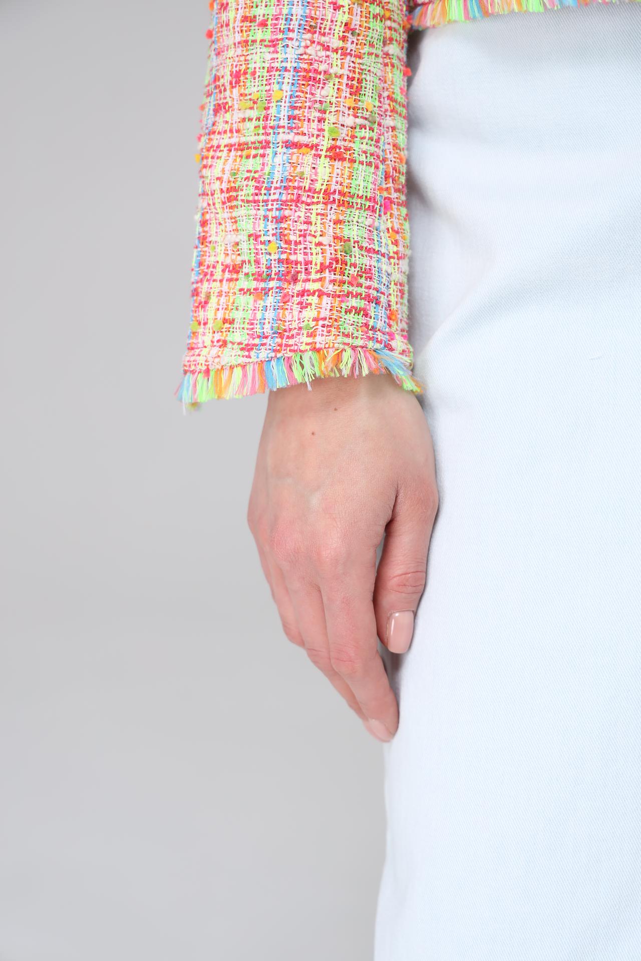 Жакет Marc Cain, разноцветный твидовый жакет с бахромой