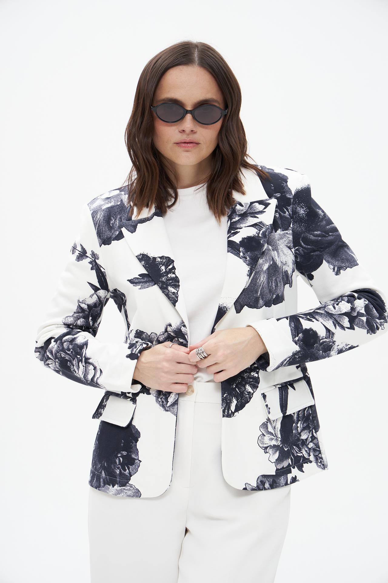 Жакет Monari, черно-белый, принт цветы, хлопок