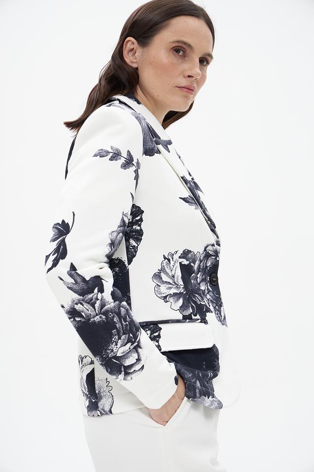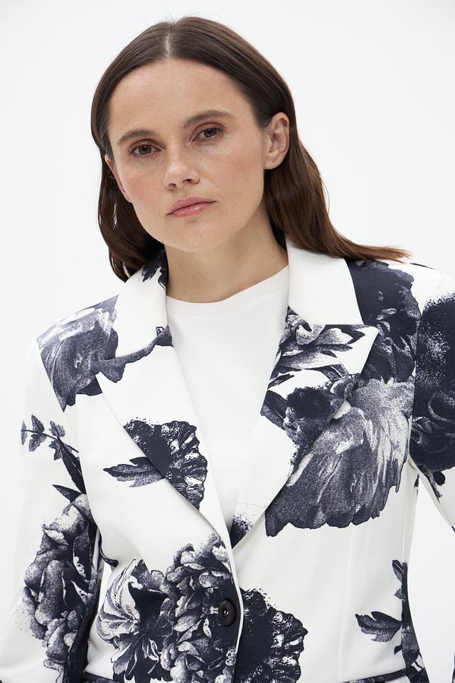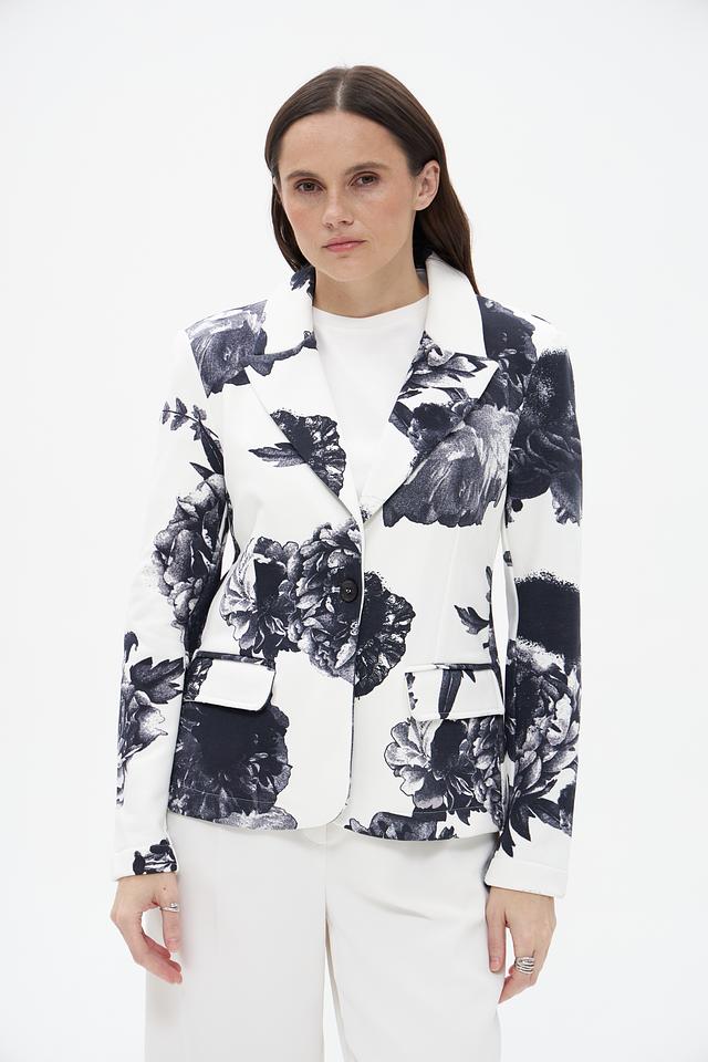 Жакет Monari белого цвета с эффектным цветочным принтом. Изготовлен из 100% хлопка, обеспечивающего комфорт и воздухопроницаемость. Стильное дополнение к вашему образу. Состав: хлопок 100%