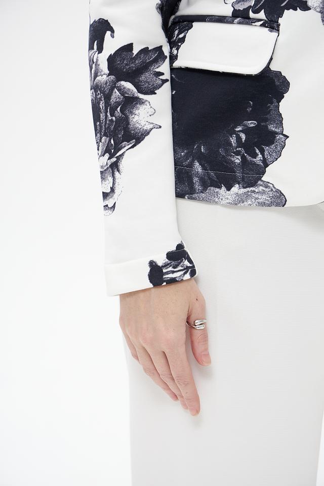 Этот жакет от Monari станет ярким акцентом вашего гардероба. Выполненный в белом цвете с крупным цветочным принтом в сине-серых тонах, он привносит свежесть и оригинальность в любой образ.