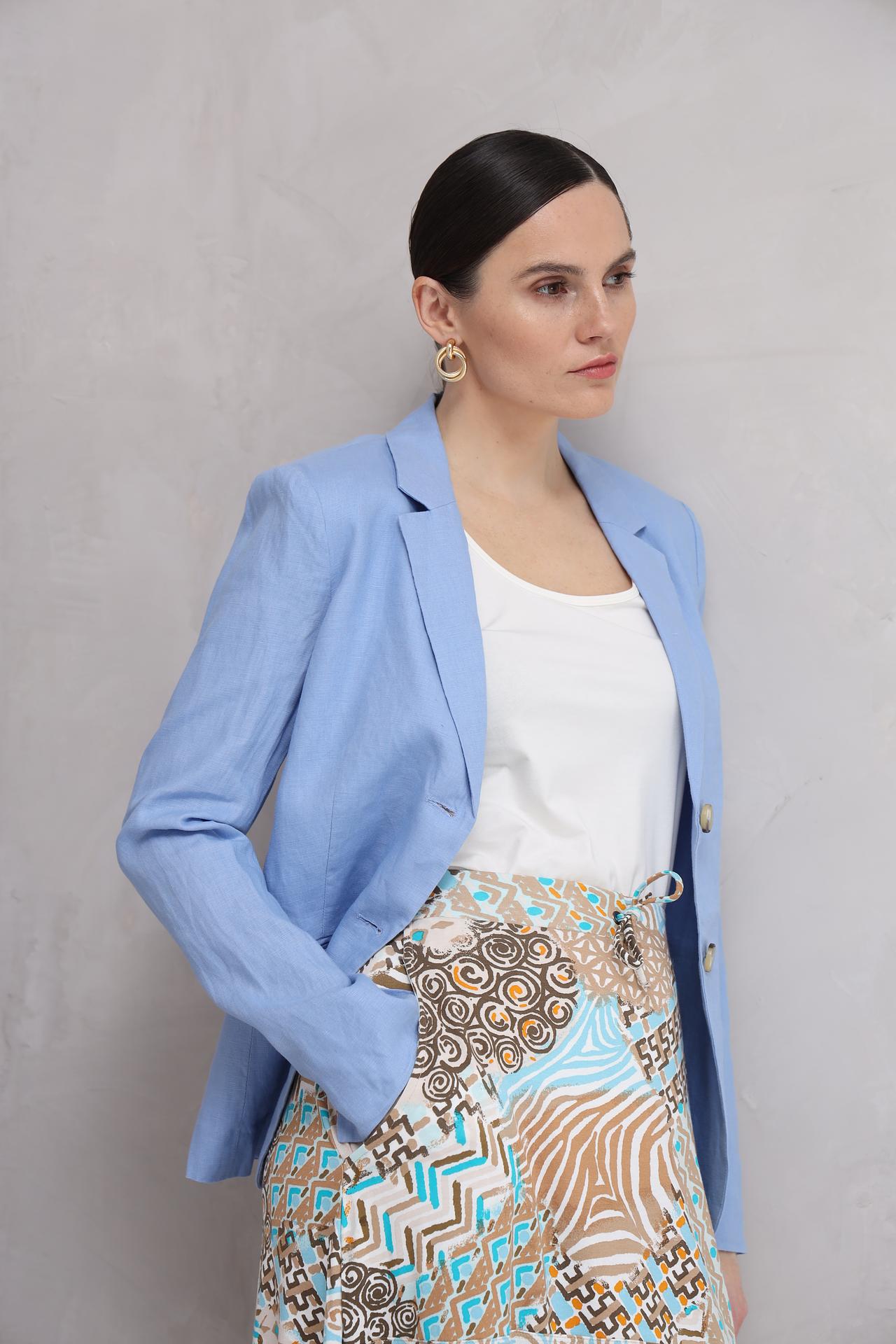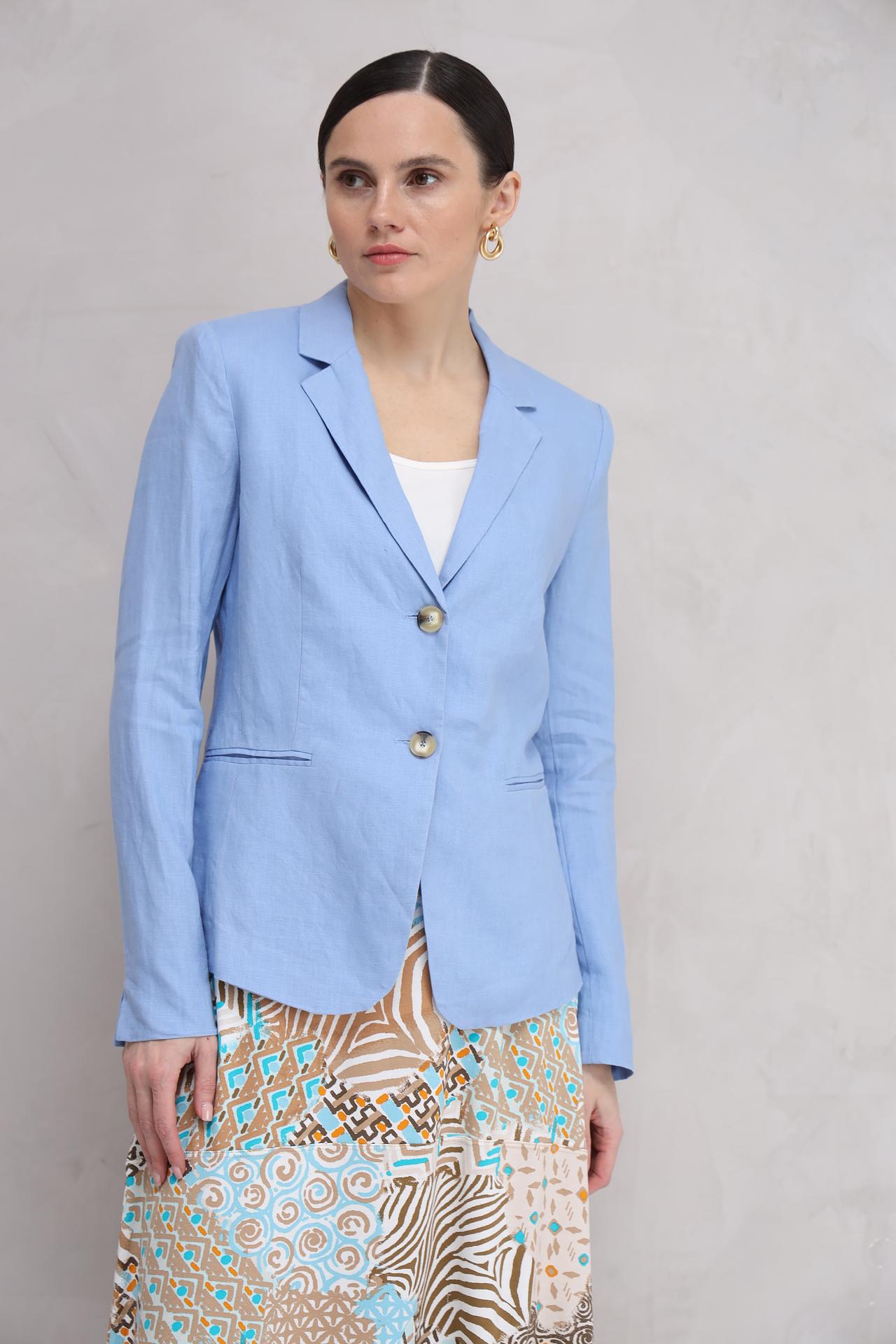 - Натуральный лен. Жакет выполнен из 100% льна, что обеспечивает отличную воздухопроницаемость и комфорт в носке.